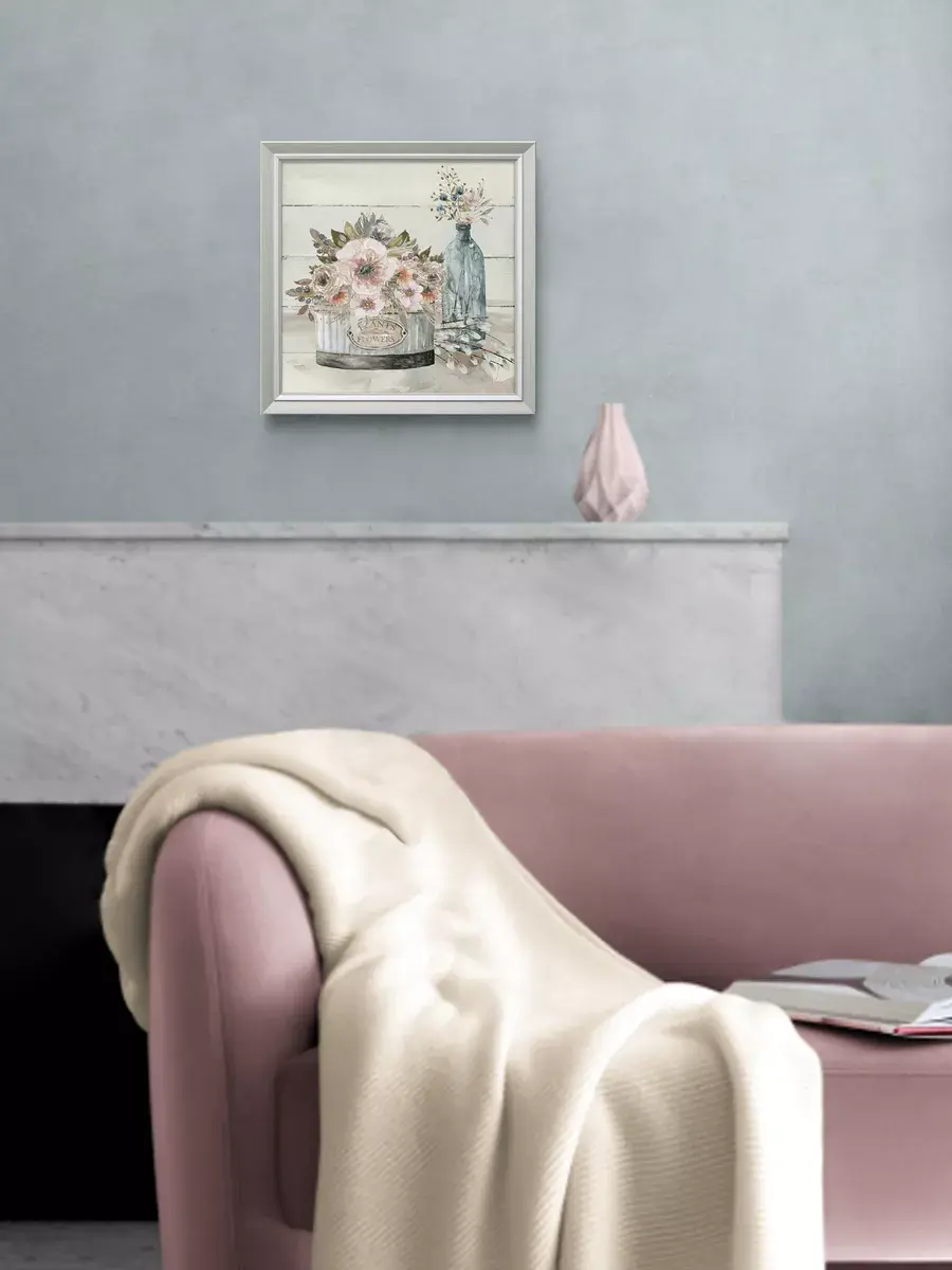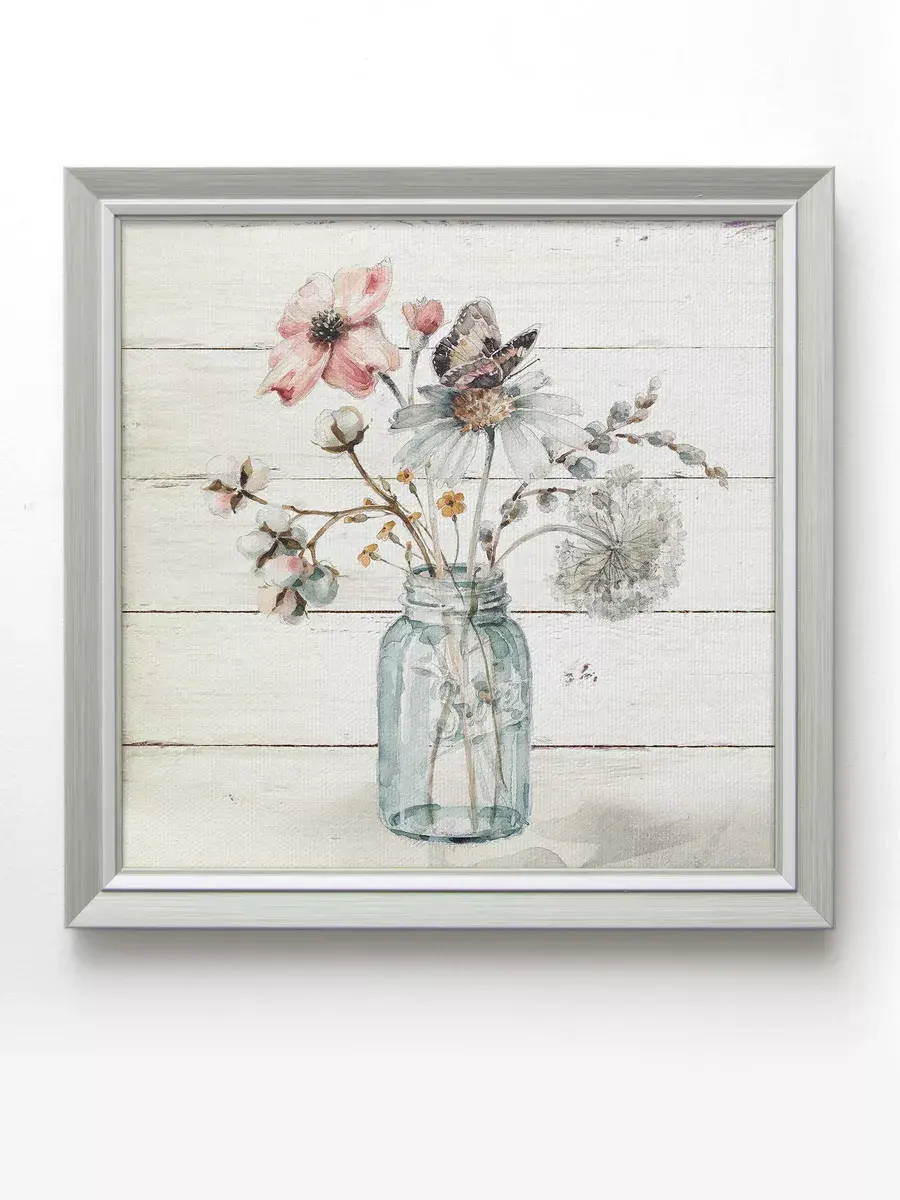 Картина напечатана на натуральном холсте, покрыта лаком. Для защиты от провисания холст наклеен на хдф. Рама из полиуретана светлая серо-голубого цвета. Картины небольшого размера 24*24, 34*34 и 44*44 см по раме, холст 20*20, 30*30 и 40*40 см соответственно, для создания коллекций. Упакованы в коробку, крепление для стены в комплекте.