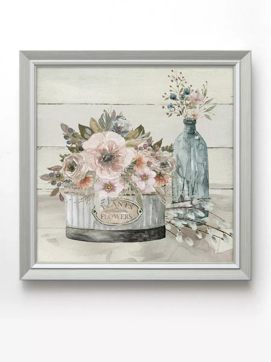 Картина напечатана на натуральном холсте, покрыта лаком. Для защиты от провисания холст наклеен на хдф. Рама из полиуретана светлая серо-голубого цвета. Картины небольшого размера 24*24, 34*34 и 44*44 см по раме, холст 20*20, 30*30 и 40*40 см соответственно, для создания коллекций. Упакованы в коробку, крепление для стены в комплекте.