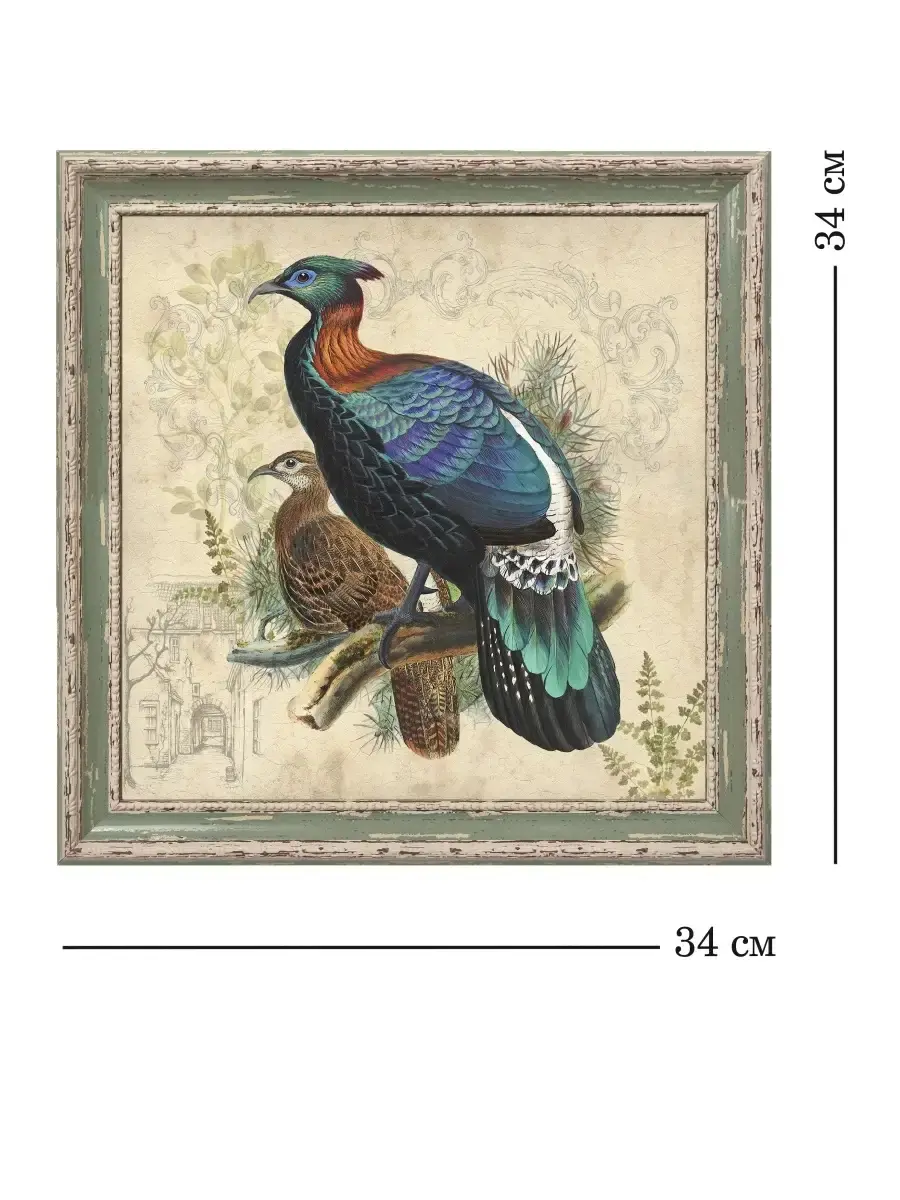 Картина напечатана на натуральном холсте, покрыта лаком. Для защиты от провисания холст наклеен на хдф. Рама из полиуретана матовая с эффектом старения.