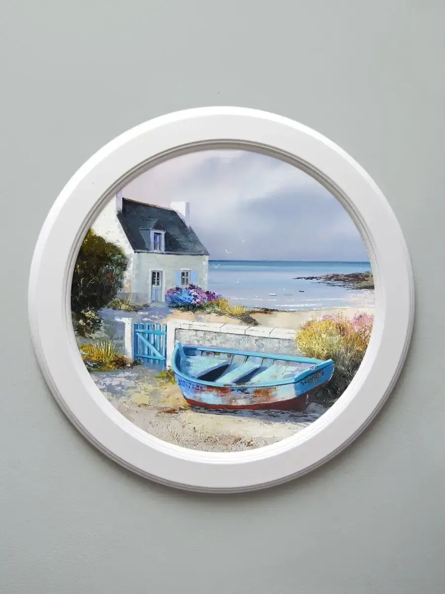 Настенный декор в нежных пастельный тонах с сюжетами в морской тематике в белой раме. Картина напечатана на натуральном холсте, покрыта матовым лаком в круглой белой раме станет прекрасным украшением интерьера. Множество вариантов дает возможность создать собственную коллекцию. Эта картина станет стильным акцентом в вашем интерьере. Она идеально подойдет для оформления стен в различных помещениях: от кухни до спальни, от гостиной до прихожей. Настенное панно выполнено на холсте и отличается яркими цветами, изображающими морскую тему, что придаст уют и свежесть любому дому или квартире. Декоративное оформление в рамке добавит элегантности и завершенности, делая картину не только предметом декора, но и важной частью атмосферы пространства. Это решение отлично впишется в интерьер офиса, зала или любой комнаты, создавая ощущение счастья и гармонии. Пусть данное предметы искусства придаст вашему дому индивидуальность и изысканный стиль.