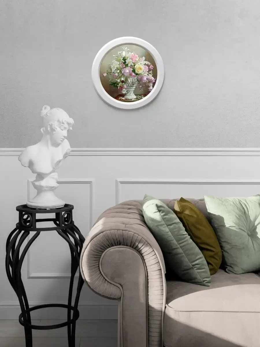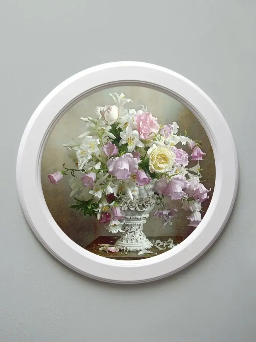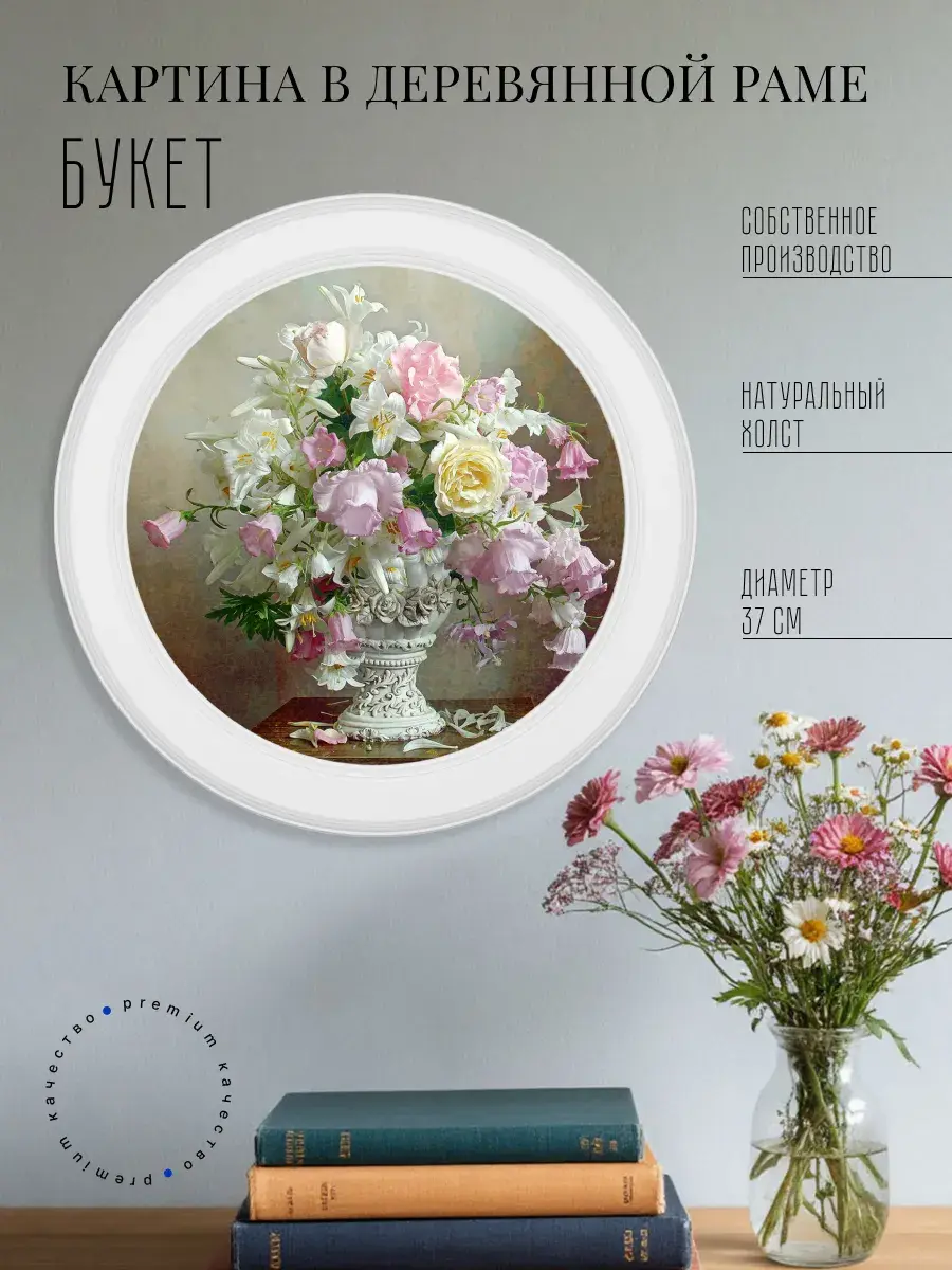 Настенный декор, выполненный в нежных пастельных тонах, станет изысканным акцентом интерьера. Картина на холсте с изображением утончённых цветочных композиций привнесёт атмосферу уюта и гармонии в вашу комнату. Этот стильный элемент великолепно дополнит любое пространство — будь то гостиная, спальня или кухня. Рама из натурального дерева добавляет теплоту и элегантность, а покрытие матовым лаком защищает изображение от пыли и повреждений.