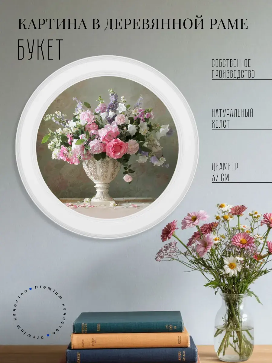 Настенный декор, выполненный в нежных пастельных тонах, станет изысканным акцентом интерьера. Картина на холсте с изображением утончённых цветочных композиций привнесёт атмосферу уюта и гармонии в вашу комнату. Этот стильный элемент великолепно дополнит любое пространство — будь то гостиная, спальня или кухня. Рама из натурального дерева добавляет теплоту и элегантность, а покрытие матовым лаком защищает изображение от пыли и повреждений.