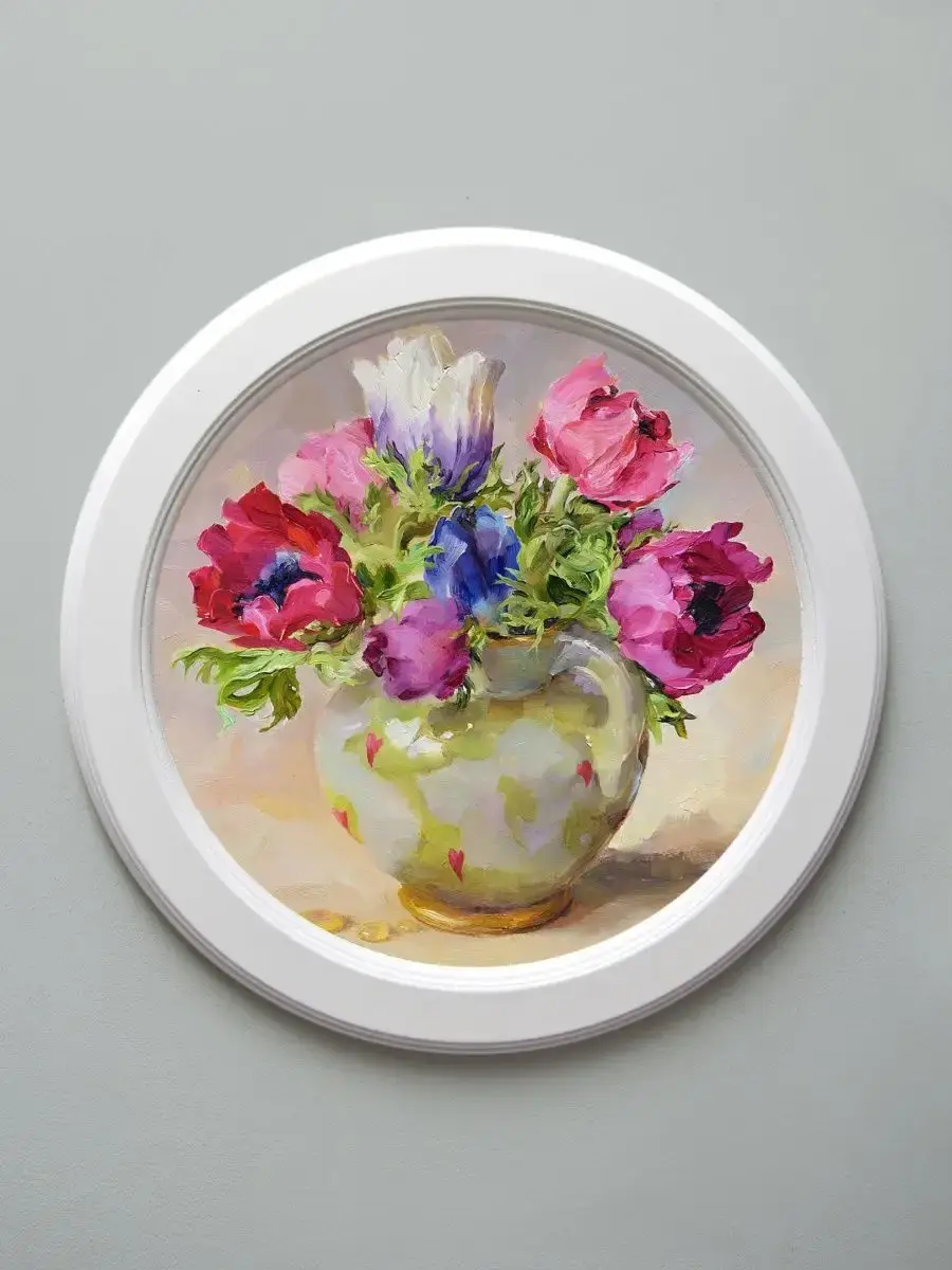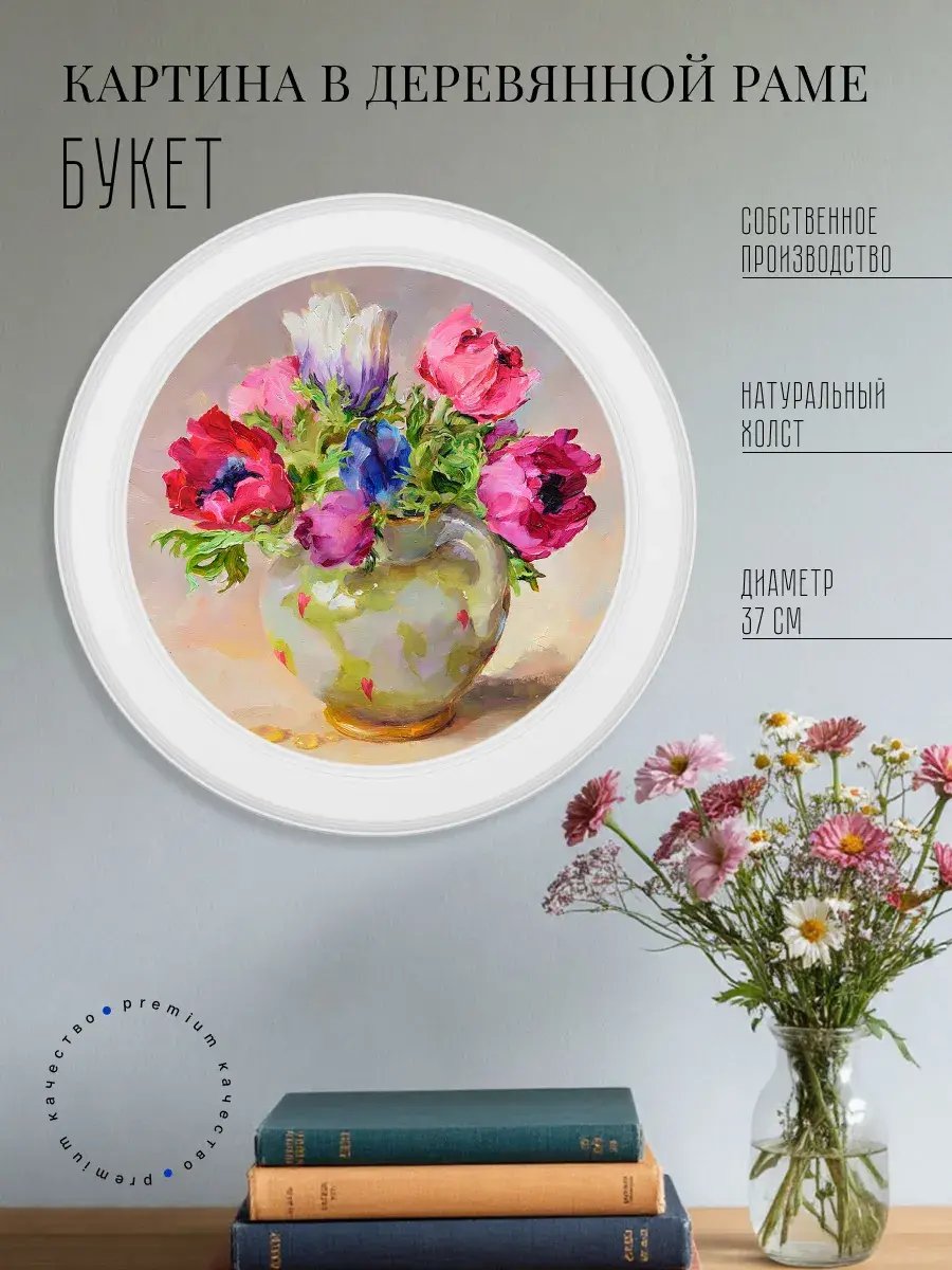 Настенный декор, выполненный в нежных пастельных тонах, станет изысканным акцентом интерьера. Картина на холсте с изображением утончённых цветочных композиций привнесёт атмосферу уюта и гармонии в вашу комнату. Этот стильный элемент великолепно дополнит любое пространство — будь то гостиная, спальня или кухня. Рама из натурального дерева добавляет теплоту и элегантность, а покрытие матовым лаком защищает изображение от пыли и повреждений.