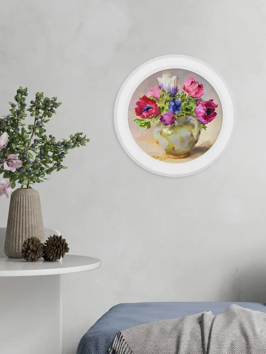 Эта картина станет стильным акцентом в вашем интерьере. Она идеально подойдет для оформления стен в различных помещениях: от кухни до спальни, от гостиной до прихожей. Настенное панно выполнено на холсте и отличается яркими цветами, изображающими природу и цветы, что придаст уют и свежесть любому дому или квартире. Декоративное оформление в рамке добавит элегантности и завершенности, делая картину не только предметом декора, но и важной частью атмосферы пространства. Это решение отлично впишется в интерьер офиса, зала или любой комнаты, создавая ощущение счастья и гармонии. Пусть данное предметы искусства придаст вашему дому индивидуальность и изысканный стиль.