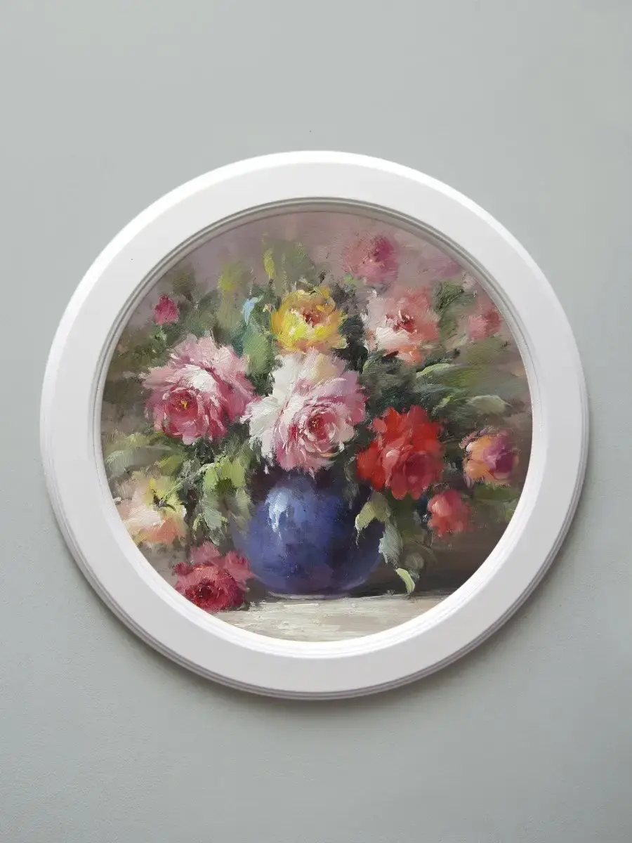 Настенный декор, выполненный в нежных пастельных тонах, станет изысканным акцентом интерьера. Картина на холсте с изображением утончённых цветочных композиций привнесёт атмосферу уюта и гармонии в вашу комнату. Этот стильный элемент великолепно дополнит любое пространство — будь то гостиная, спальня или кухня. Рама из натурального дерева добавляет теплоту и элегантность, а покрытие матовым лаком защищает изображение от пыли и повреждений.