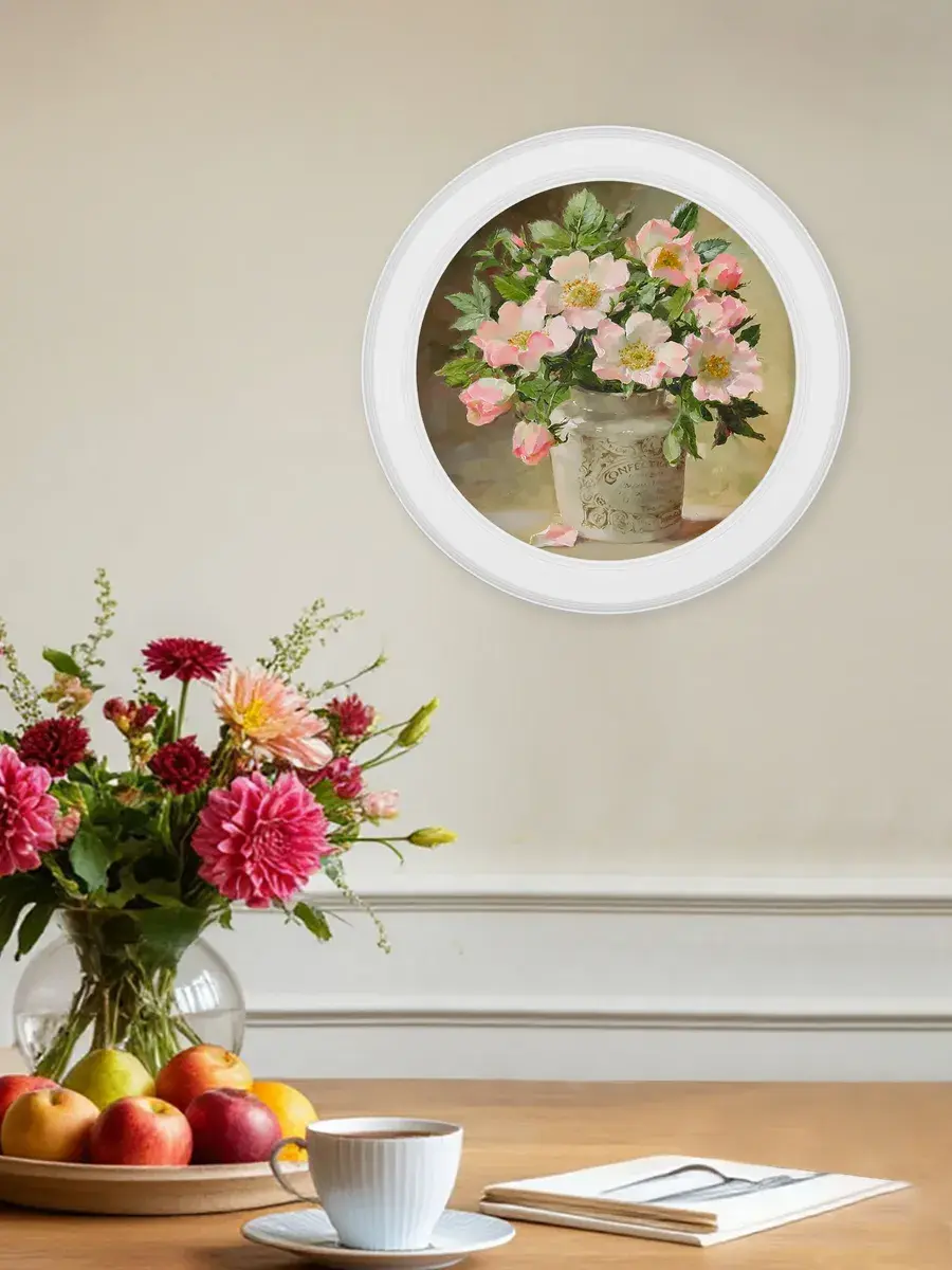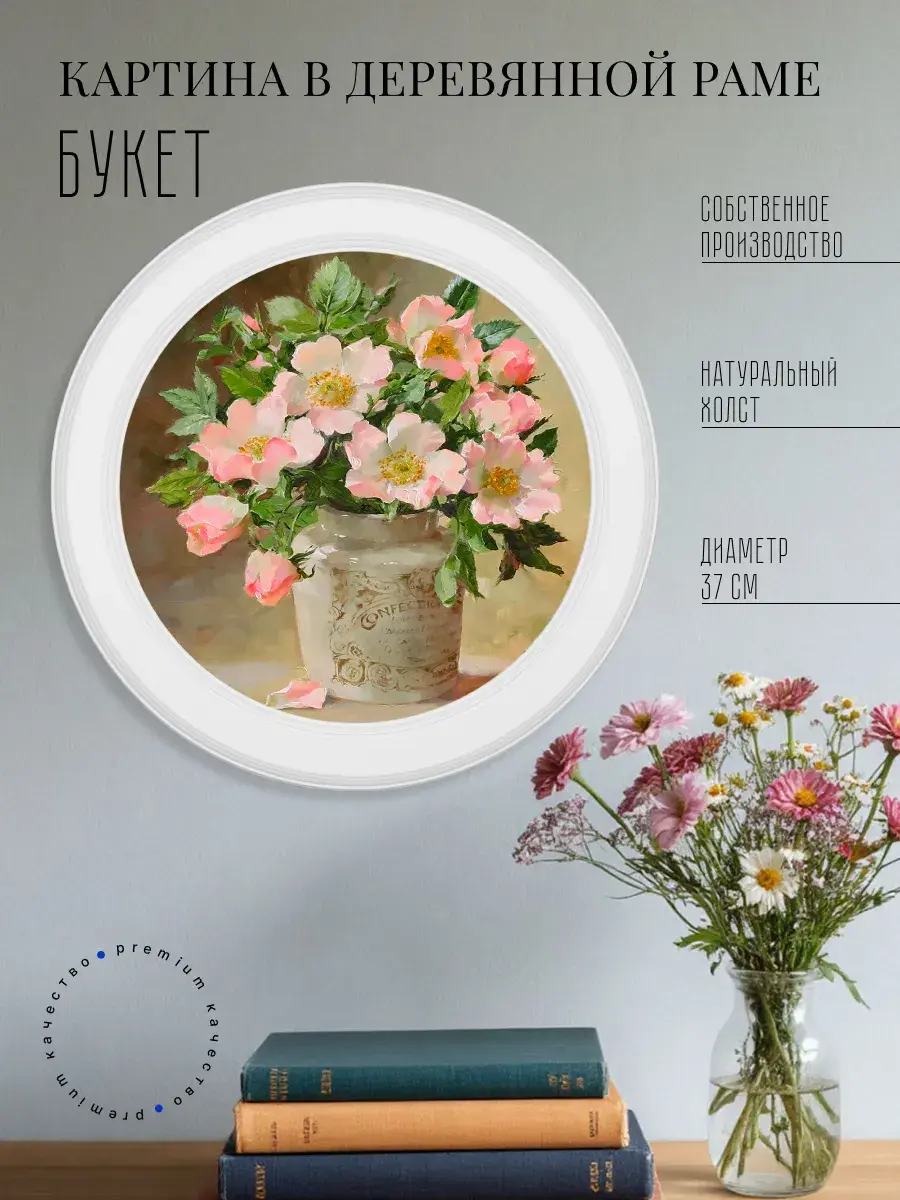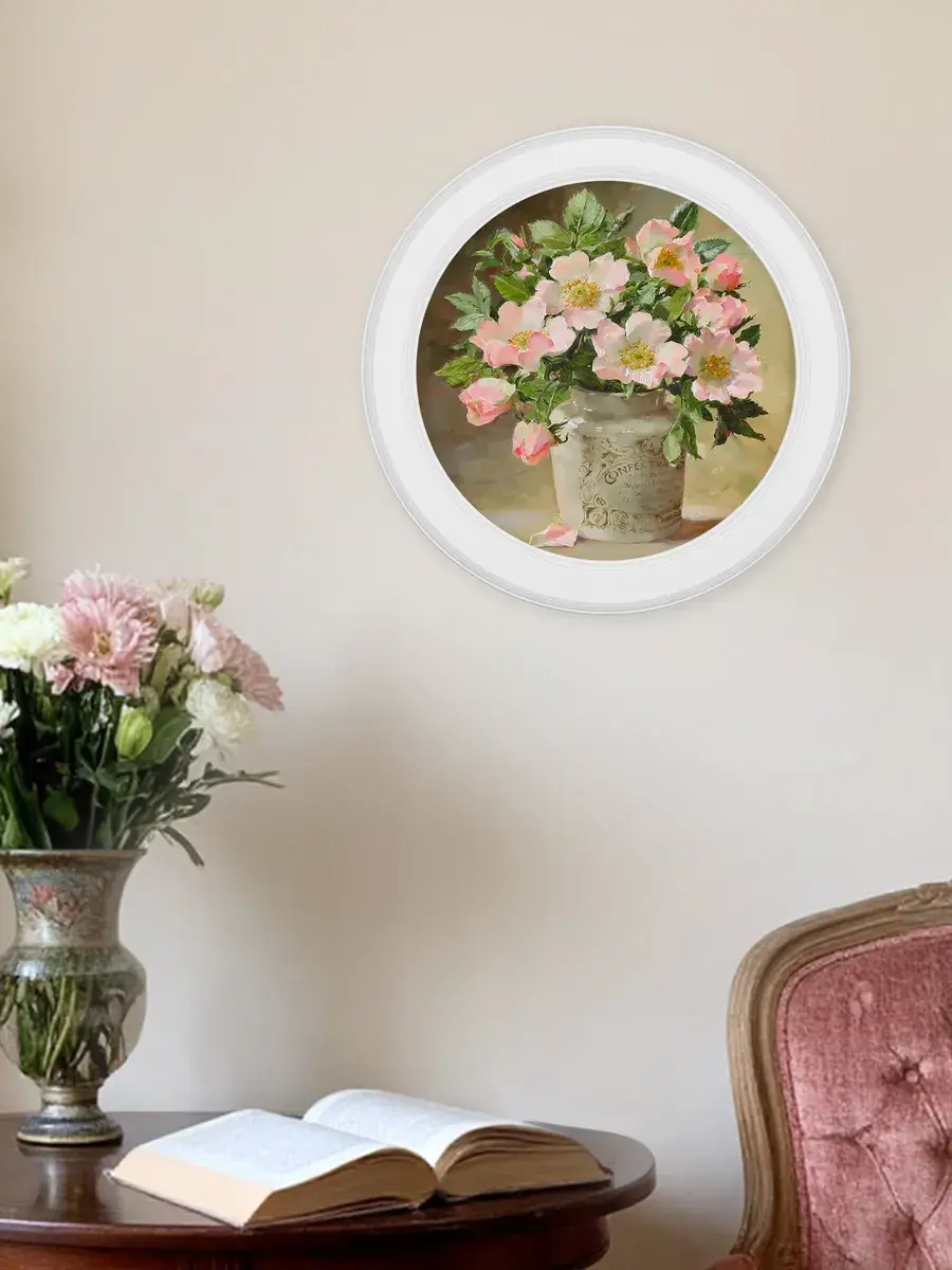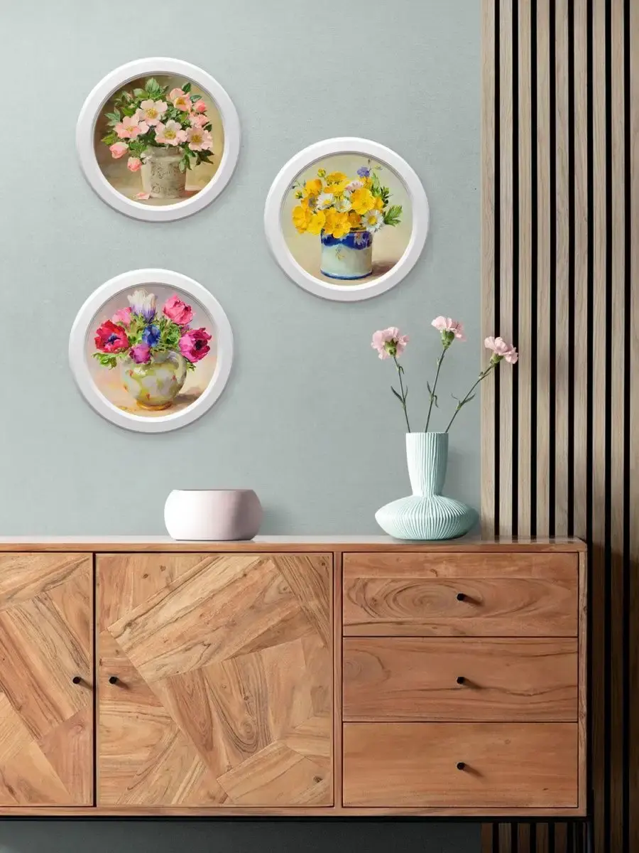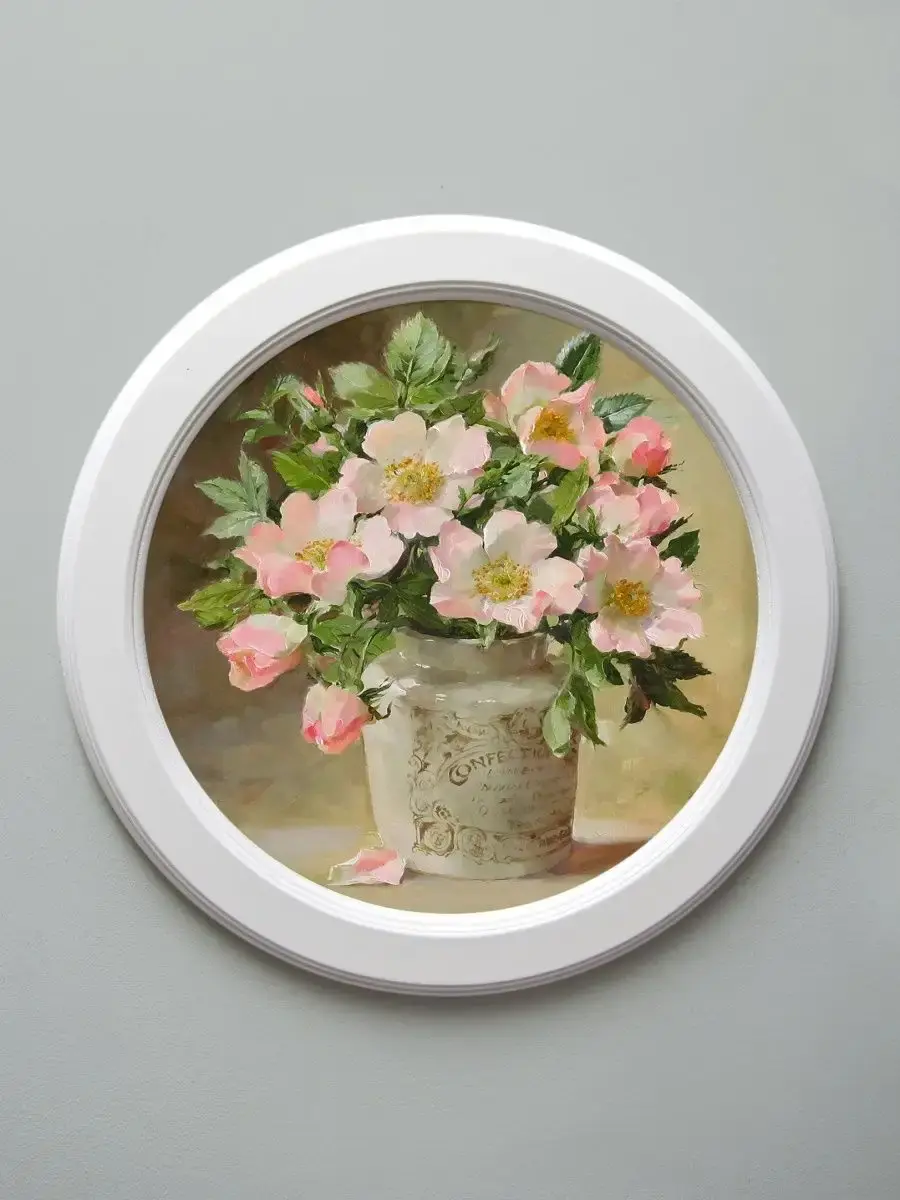 Настенный декор, выполненный в нежных пастельных тонах, станет изысканным акцентом интерьера. Картина на холсте с изображением утончённых цветочных композиций привнесёт атмосферу уюта и гармонии в вашу комнату. Этот стильный элемент великолепно дополнит любое пространство — будь то гостиная, спальня или кухня. Рама из натурального дерева добавляет теплоту и элегантность, а покрытие матовым лаком защищает изображение от пыли и повреждений.