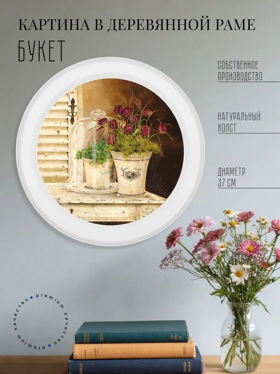 Настенный декор, выполненный в нежных пастельных тонах, станет изысканным акцентом интерьера. Картина на холсте с изображением утончённых цветочных композиций привнесёт атмосферу уюта и гармонии в вашу комнату. Этот стильный элемент великолепно дополнит любое пространство — будь то гостиная, спальня или кухня. Рама из натурального дерева добавляет теплоту и элегантность, а покрытие матовым лаком защищает изображение от пыли и повреждений.