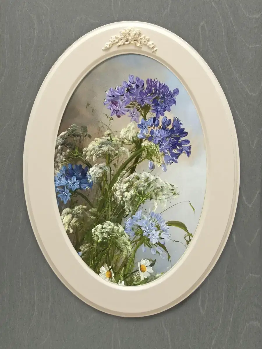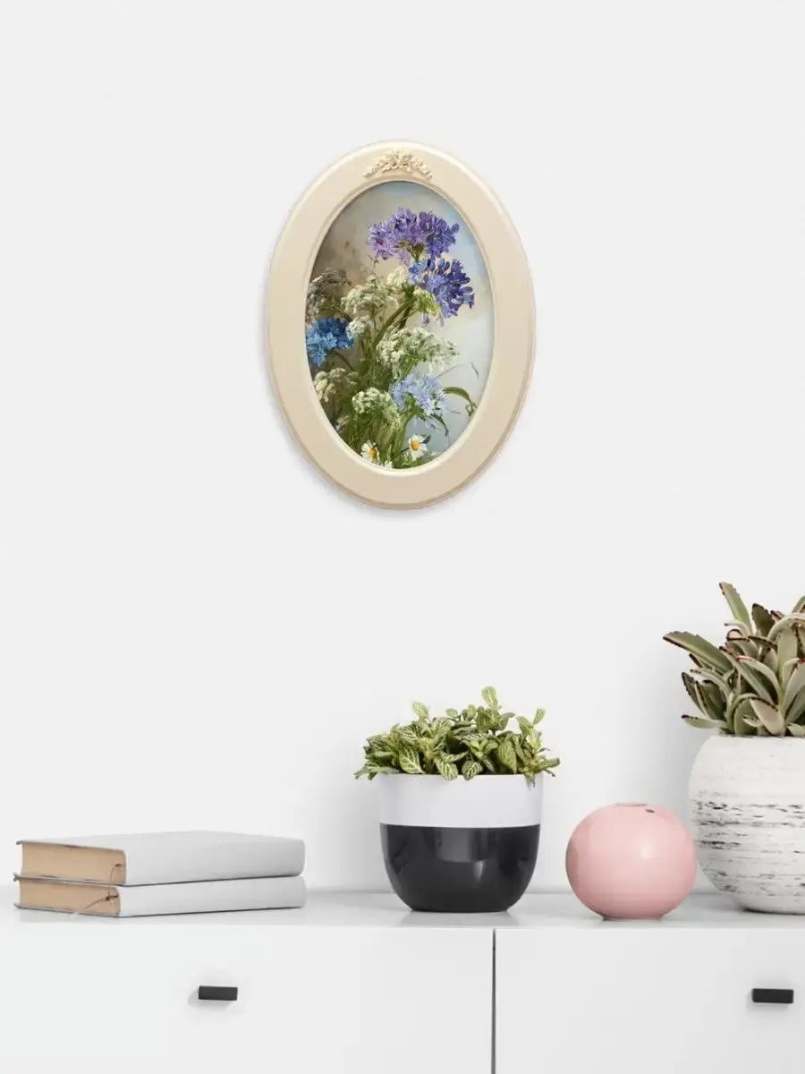 Настенный декор в нежных пастельный тонах. Картина напечатана на натуральном холсте, покрыта матовым лаком в овальной молочной раме с лепниной. Станет прекрасным украшением интерьера. Эта картина станет стильным акцентом в вашем интерьере. Она идеально подойдет для оформления стен в различных помещениях: от кухни до спальни, от гостиной до прихожей. Настенное панно выполнено на холсте и отличается яркими цветами, изображающими цветы, что придаст уют и свежесть любому дому или квартире. Декоративное оформление в рамке добавит элегантности и завершенности, делая картину не только предметом декора, но и важной частью атмосферы пространства. Это решение отлично впишется в интерьер офиса, зала или любой комнаты, создавая ощущение счастья и гармонии. Пусть данное предметы искусства придаст вашему дому индивидуальность и изысканный стиль.