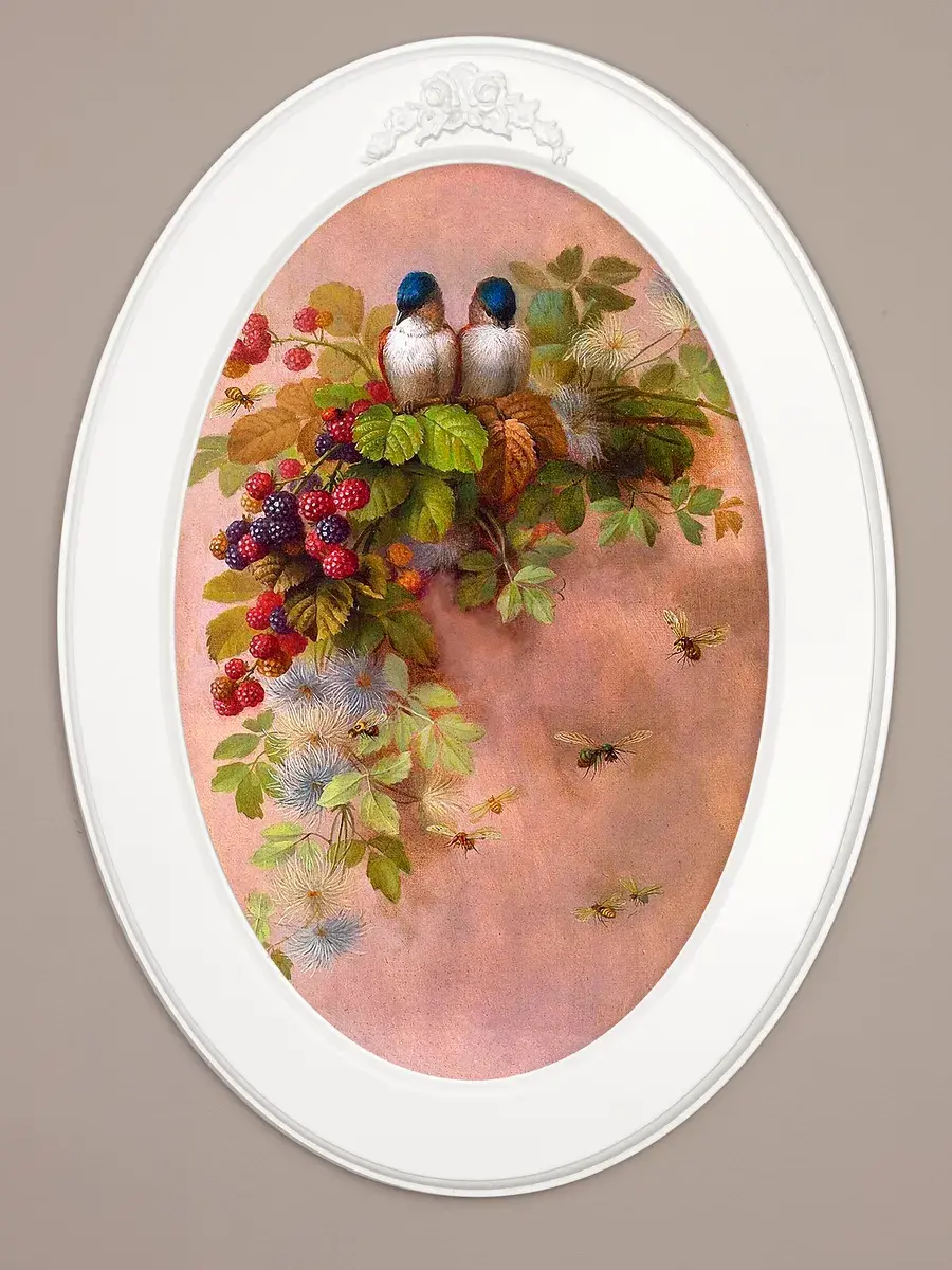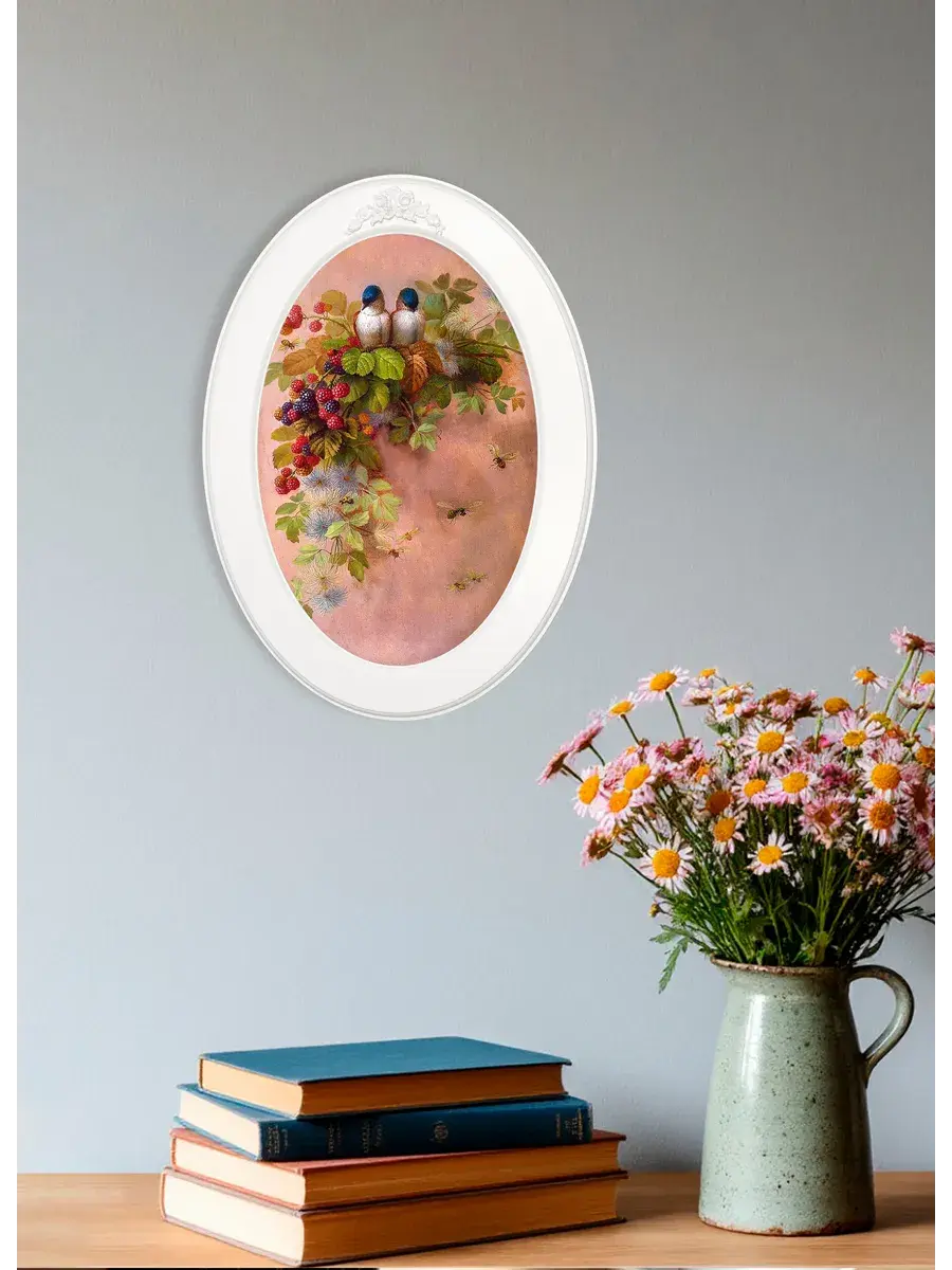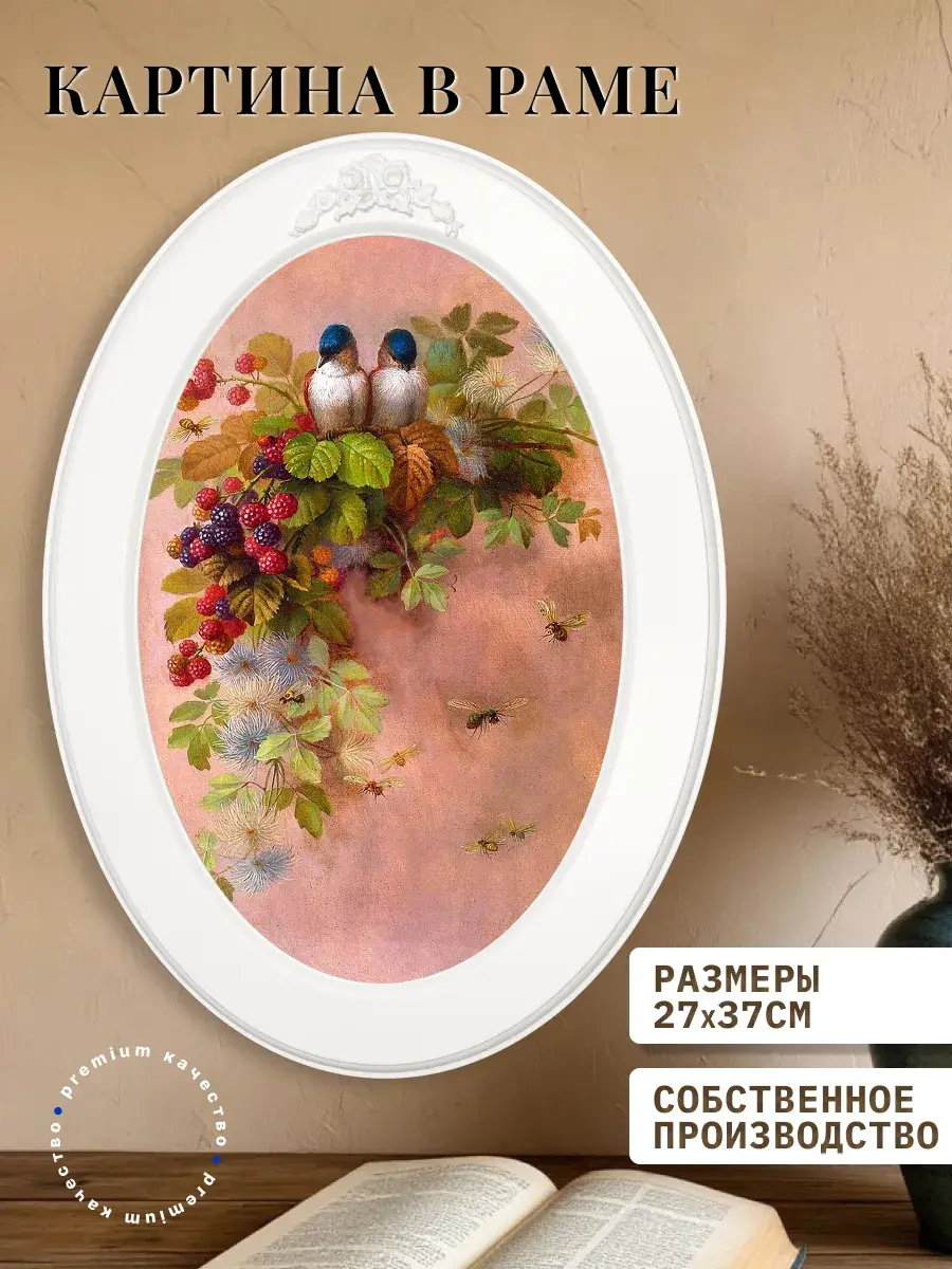 Картина напечатана на натуральном холсте, покрыта матовым лаком оформлена в овальную белую раму с лепниной. Картина станет прекрасным украшением интерьера. Множество вариантов дает возможность создать собственную коллекцию. Картины для украшения в стиле Прованс или для детской комнаты.