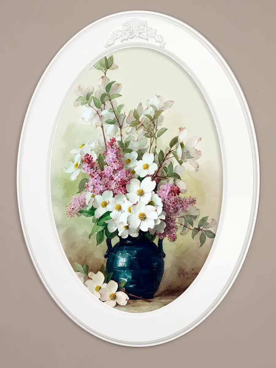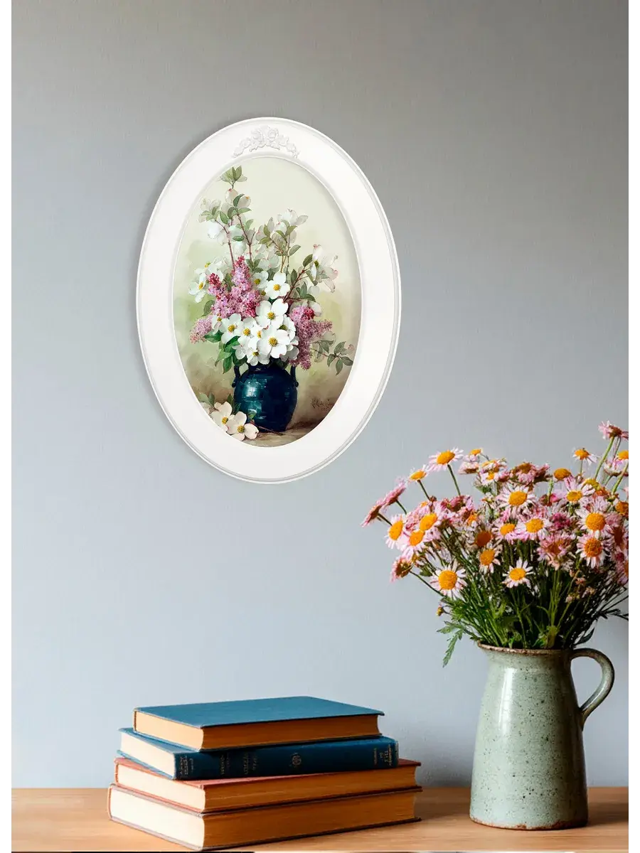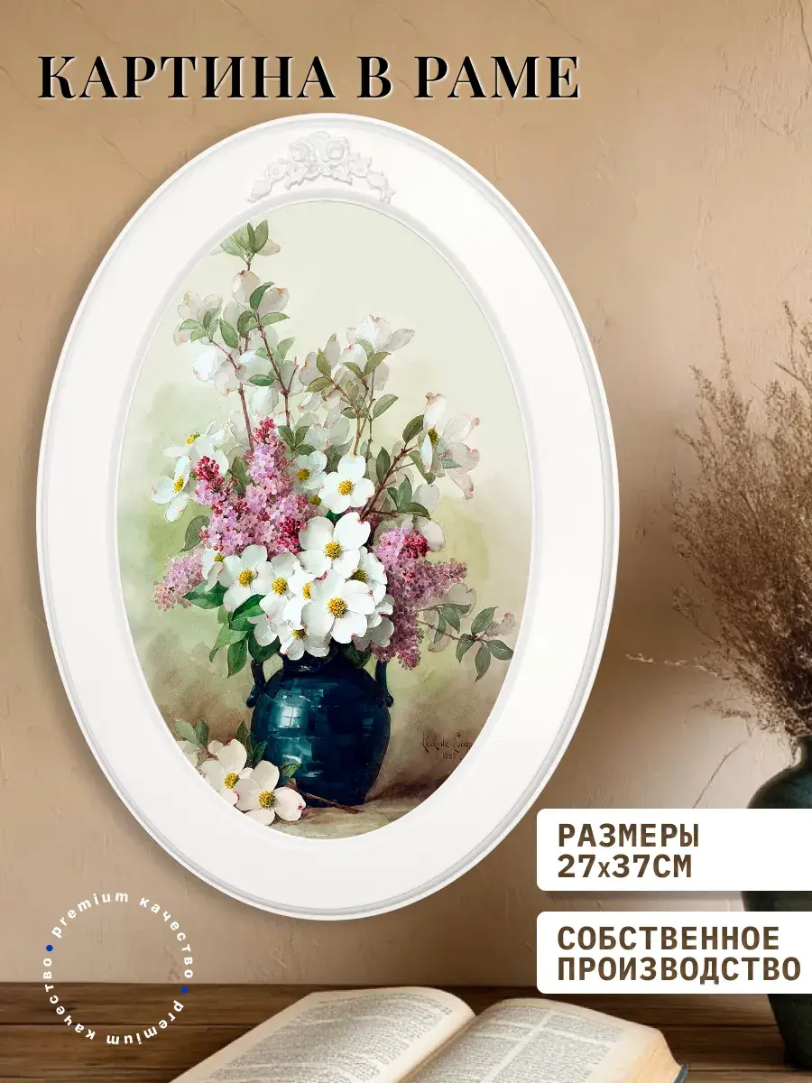 Картина напечатана на натуральном холсте, покрыта матовым лаком, оформлена в овальную белую раму с лепниной. Картина станет прекрасным украшением интерьера. Множество вариантов дает возможность создать собственную коллекцию. Картины для украшения в стиле Прованс или для детской комнаты.