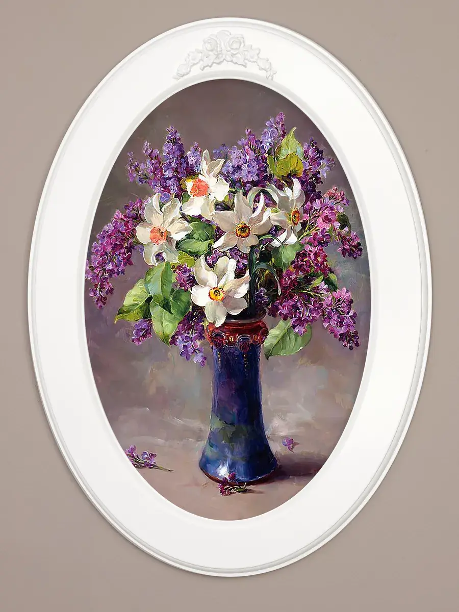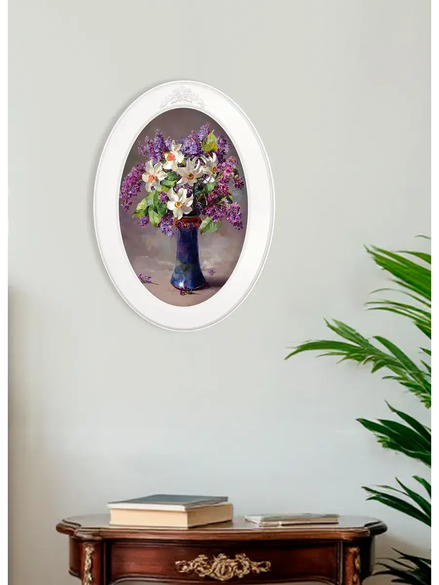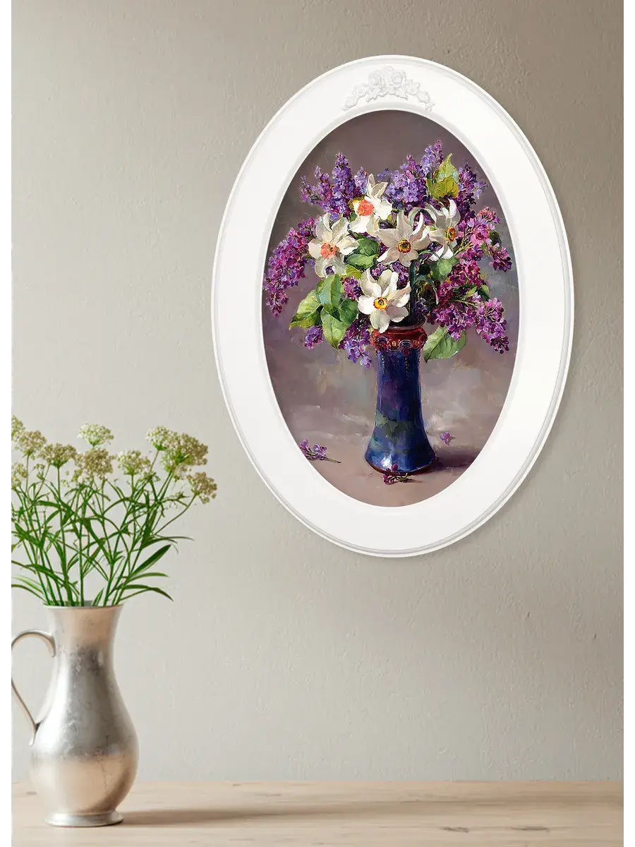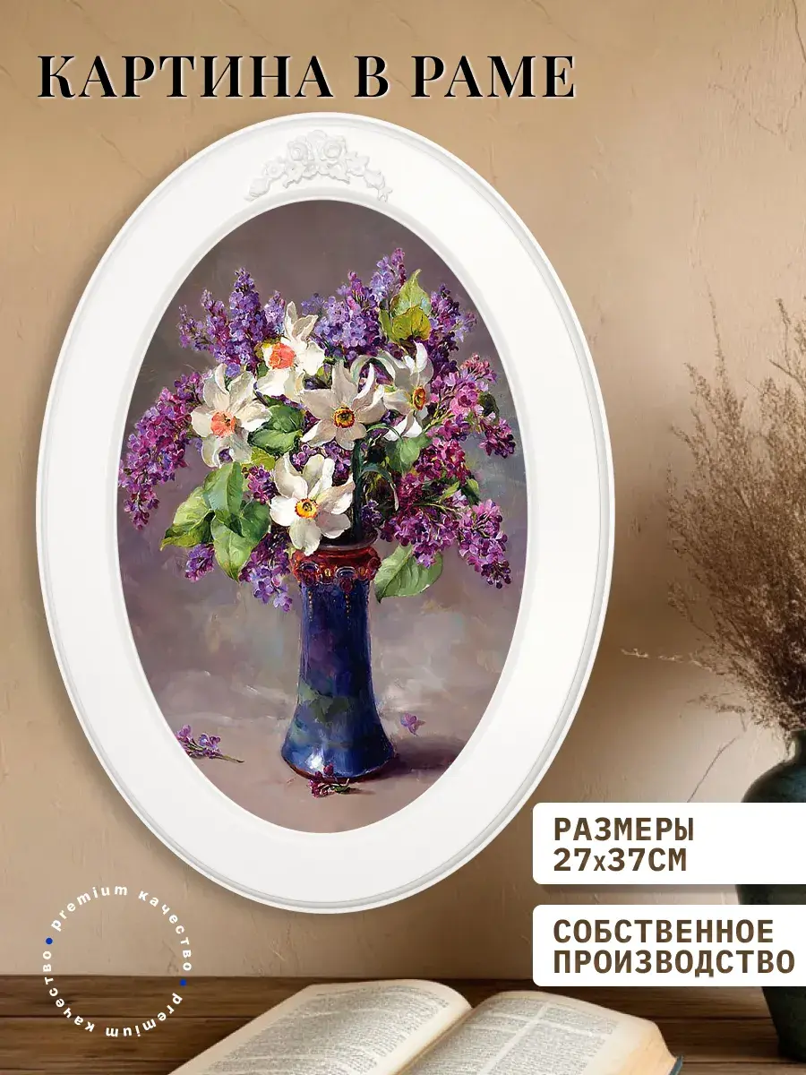 Картина напечатана на натуральном холсте, покрыта матовым лаком оформлена в овальную белую раму с лепниной. Картина станет прекрасным украшением интерьера. Множество вариантов дает возможность создать собственную коллекцию. Картины для украшения в стиле Прованс или для детской комнаты.