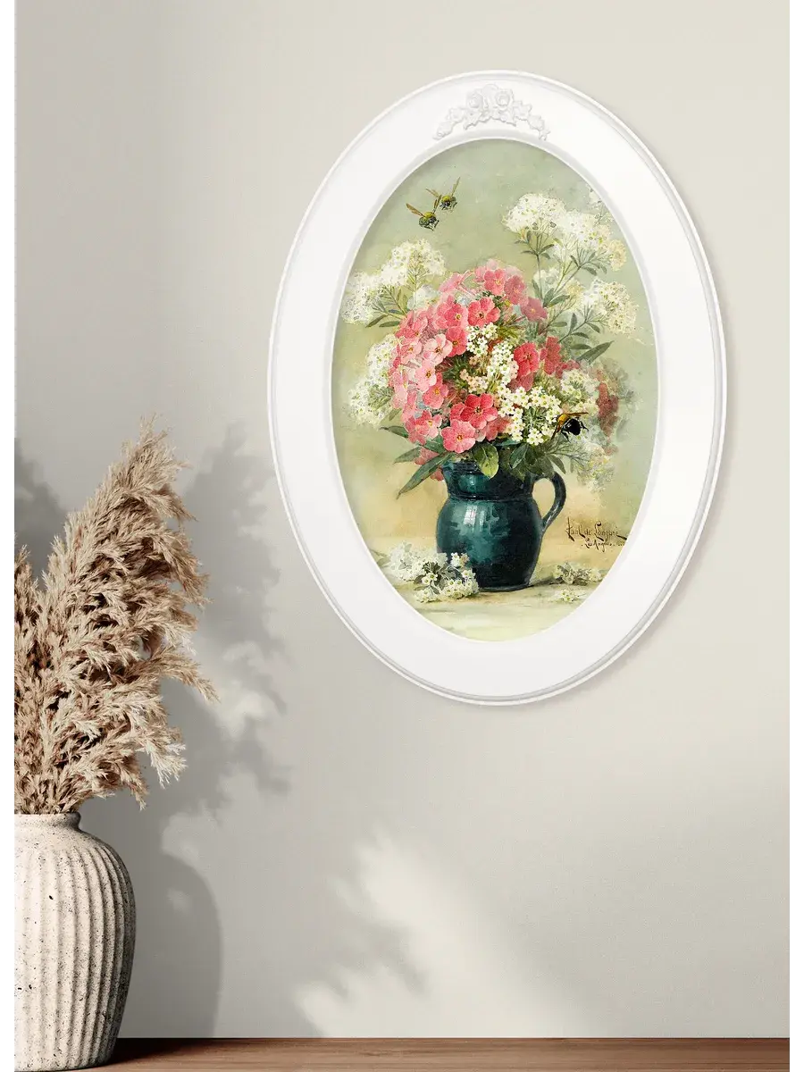 Картина напечатана на натуральном холсте, покрыта матовым лаком, оформлена в овальную белую раму с лепниной. Картина станет прекрасным украшением интерьера. Множество вариантов дает возможность создать собственную коллекцию. Картины для украшения в стиле Прованс или для детской комнаты.