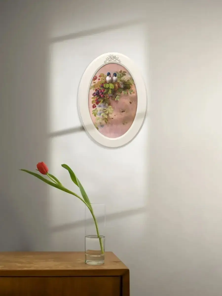 Настенный декор в нежных пастельный тонах. Картина напечатана на натуральном холсте, покрыта матовым лаком в овальной молочной раме с лепниной. Станет прекрасным украшением интерьера. Эта картина станет стильным акцентом в вашем интерьере. Она идеально подойдет для оформления стен в различных помещениях: от кухни до спальни, от гостиной до прихожей. Настенное панно выполнено на холсте и отличается яркими цветами, изображающими цветы, что придаст уют и свежесть любому дому или квартире. Декоративное оформление в рамке добавит элегантности и завершенности, делая картину не только предметом декора, но и важной частью атмосферы пространства. Это решение отлично впишется в интерьер офиса, зала или любой комнаты, создавая ощущение счастья и гармонии. Пусть данное предметы искусства придаст вашему дому индивидуальность и изысканный стиль.