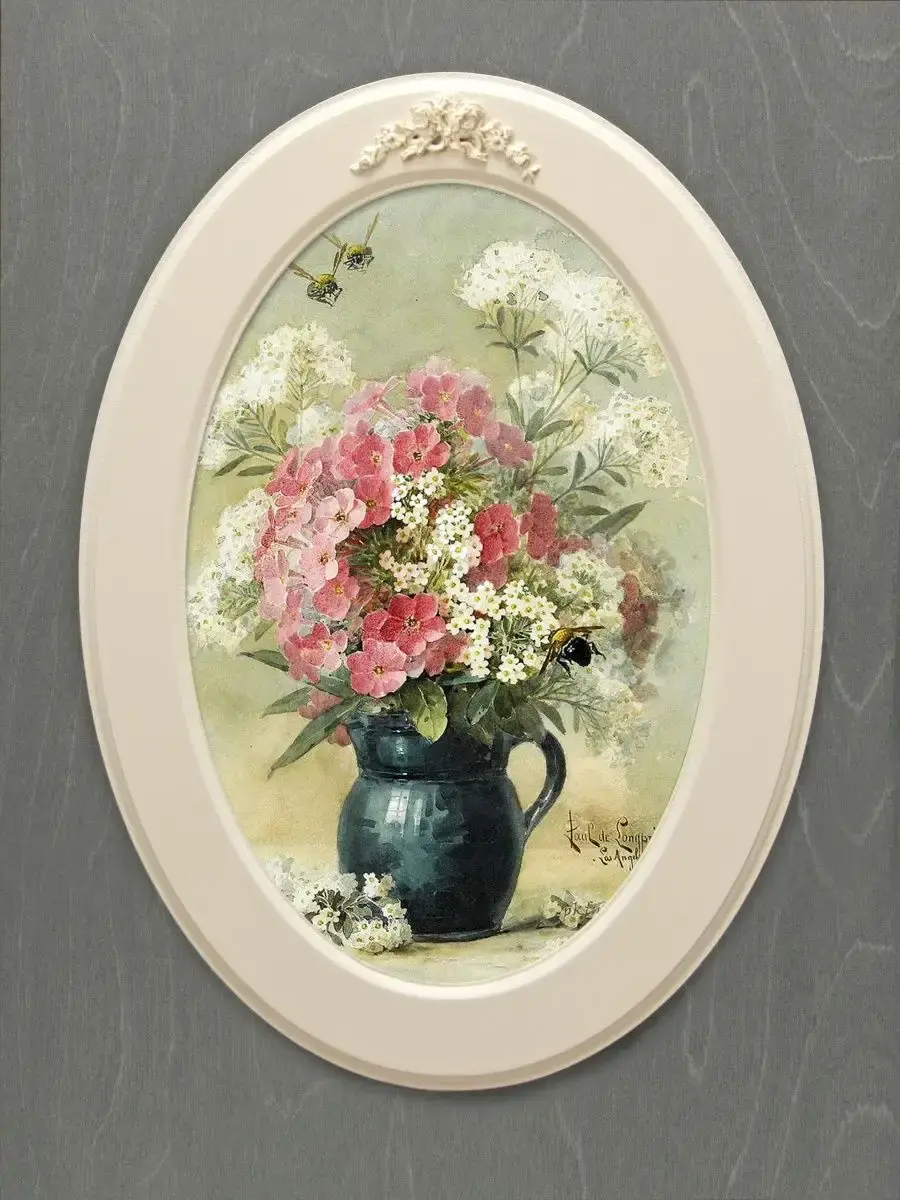 Настенный декор в нежных пастельный тонах. Картина напечатана на натуральном холсте, покрыта матовым лаком в овальной молочной раме с лепниной. Станет прекрасным украшением интерьера. Эта картина станет стильным акцентом в вашем интерьере. Она идеально подойдет для оформления стен в различных помещениях: от кухни до спальни, от гостиной до прихожей. Настенное панно выполнено на холсте и отличается яркими цветами, изображающими цветы, что придаст уют и свежесть любому дому или квартире. Декоративное оформление в рамке добавит элегантности и завершенности, делая картину не только предметом декора, но и важной частью атмосферы пространства. Это решение отлично впишется в интерьер офиса, зала или любой комнаты, создавая ощущение счастья и гармонии. Пусть данное предметы искусства придаст вашему дому индивидуальность и изысканный стиль.