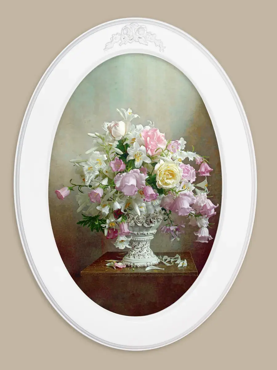 Картина напечатана на натуральном холсте, покрыта матовым лаком оформлена в овальную белую раму с лепниной. Картина станет прекрасным украшением интерьера. Множество вариантов дает возможность создать собственную коллекцию. Картины для украшения в стиле Прованс или для детской комнаты.