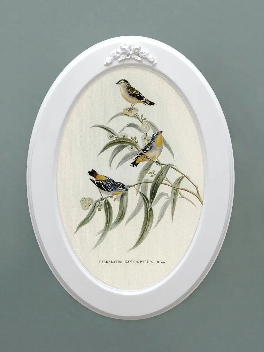 Настенный декор "Винтажные птички" в нежных пастельный тонах. Картина напечатана на натуральном холсте, покрыта матовым лаком для защиты от солнца и пыли, в овальной белой раме с лепниной ручной работы. Картина с птичками станет прекрасным подарком и украшением интерьера дома, на даче или в офисе. Множество вариантов дает возможность создать собственную коллекцию, украсить стены спальни, в кухне, прихожей или детской комнате. Рама изготовлена из цельного листа МДФ 10 мм, не имеет зазоров и стыков. Оформляя интерьер картинами не большого размера в одном стиле Вы создаете уютную атмосферу в доме. Коллекцию картин можно все время пополнять или обновлять новми сюжетами , создавая настроение. Птицы подойдут для интерьера в стиле Прованс, Шеббишик, Классика. Окрашена рама экологичной акриловой эмалью в белый цвет. Размер картины 27х37 см, размер изображения 20х30 см. Крепление для стены в комплекте.