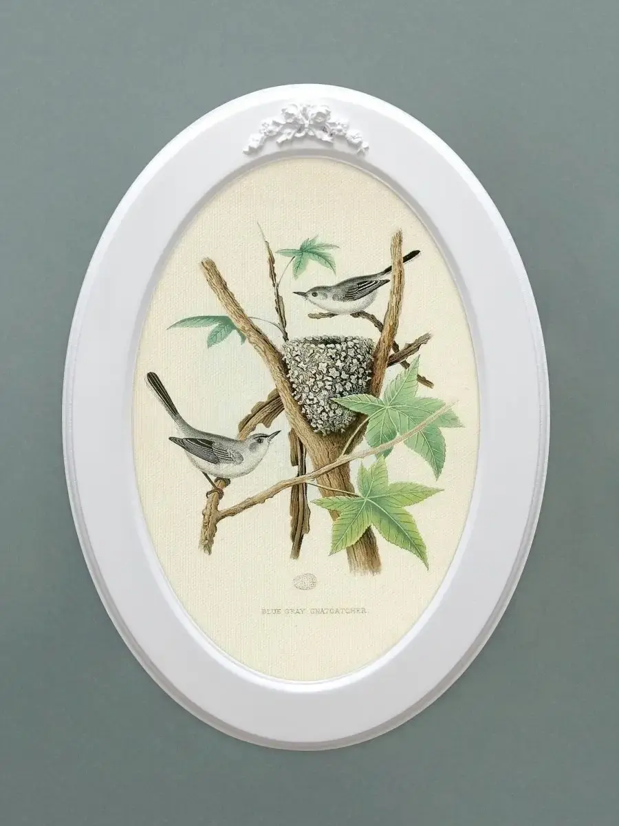 Настенный декор "Винтажные птички" в нежных пастельный тонах. Картина напечатана на натуральном холсте, покрыта матовым лаком для защиты от солнца и пыли, в овальной белой раме с лепниной ручной работы. Картина с птичками станет прекрасным подарком и украшением интерьера дома, на даче или в офисе. Множество вариантов дает возможность создать собственную коллекцию, украсить стены спальни, в кухне, прихожей или детской комнате. Рама изготовлена из цельного листа МДФ 10 мм, не имеет зазоров и стыков. Оформляя интерьер картинами не большого размера в одном стиле Вы создаете уютную атмосферу в доме. Коллекцию картин можно все время пополнять или обновлять новми сюжетами , создавая настроение. Птицы подойдут для интерьера в стиле Прованс, Шеббишик, Классика. Окрашена рама экологичной акриловой эмалью в белый цвет. Размер картины 27х37 см, размер изображения 20х30 см. Крепление для стены в комплекте.