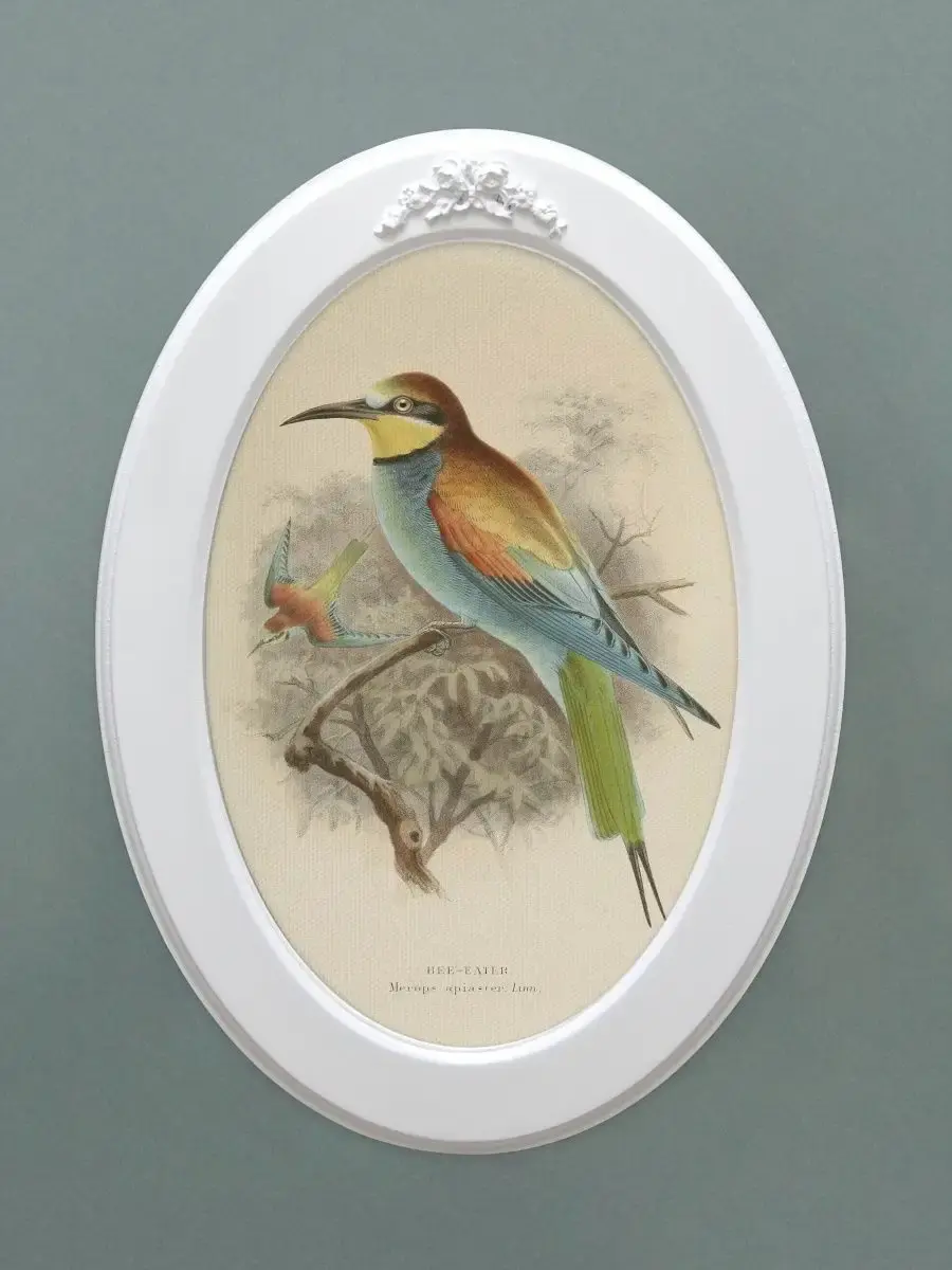 Настенный декор "Винтажные птички" в нежных пастельный тонах. Картина напечатана на натуральном холсте, покрыта матовым лаком для защиты от солнца и пыли, в овальной белой раме с лепниной ручной работы. Картина с птичками станет прекрасным подарком и украшением интерьера дома, на даче или в офисе. Множество вариантов дает возможность создать собственную коллекцию, украсить стены спальни, в кухне, прихожей или детской комнате. Рама изготовлена из цельного листа МДФ 10 мм, не имеет зазоров и стыков. Оформляя интерьер картинами не большого размера в одном стиле Вы создаете уютную атмосферу в доме. Коллекцию картин можно все время пополнять или обновлять новми сюжетами , создавая настроение. Птицы подойдут для интерьера в стиле Прованс, Шеббишик, Классика. Окрашена рама экологичной акриловой эмалью в белый цвет. Размер картины 27х37 см, размер изображения 20х30 см. Крепление для стены в комплекте.