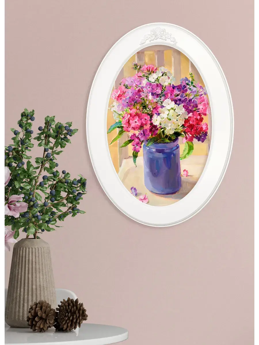 Картина напечатана на натуральном холсте, покрыта матовым лаком, оформлена в овальную белую раму с лепниной. Картина станет прекрасным украшением интерьера. Множество вариантов дает возможность создать собственную коллекцию. Картины для украшения в стиле Прованс или для детской комнаты.