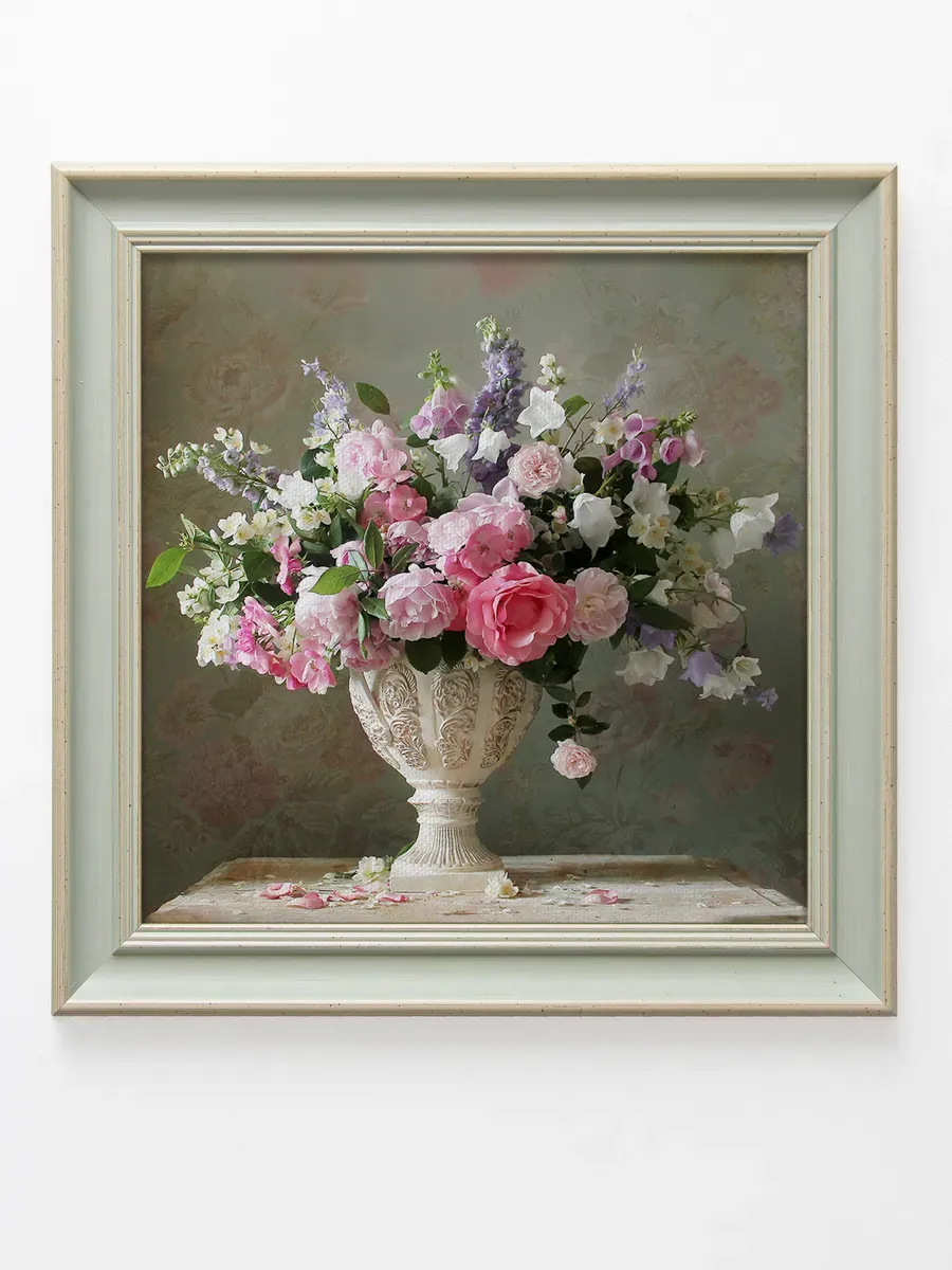 Картина на натуральном холсте "Розовый букет" от Elenadecor станет изысканным украшением любого интерьера. Эта интерьерная картина размером 37 на 37 см, выполненная на натуральном холсте, порадует вас своей красотой и качеством исполнения. Яркий и реалистичный рисунок цветов и растений, изображённых на картине, создаст в вашем доме атмосферу уюта и тепла. Картина поставляется в классической раме мятного цвета, что придает ей завершенный и элегантный вид. Благодаря удобному креплению, ее легко повесить на стену в гостиной, спальне, прихожей или в любом другом помещении. "Розовый букет" станет прекрасным дополнением к вашей коллекции картин и подарит вам эстетическое наслаждение каждый день.