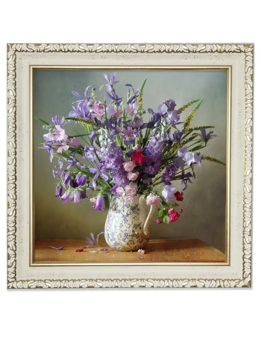 Изысканная картина с живописными цветами, репродукция выполненная в высоком разрешении на натуральном холсте. Эта утонченная работа паразит ваш взгляд своей яркостью и красотой. Полевые цветы создадут неповторимое сочетание цветов на вашей стене. Рама из полиуретана с золотистой патиной добавит шарма и уюта вашему интерьеру. Украшение для домашнего пространства, эта картина подойдет для гостиной, спальни, детской или даже кухни. Нежные букеты придадут вашему интерьеру нотку романтики и свежести. Размер картины 37*37 см (холст 30х30см) идеально подойдет для любого помещения, для создания домашней галереи. Упакована в пакет и коробку для сохранности при доставке. Подарите себе или близким этот уникальный арт-продукт, который станет ярким акцентом в вашем доме. Крепление для стены в комплекте.