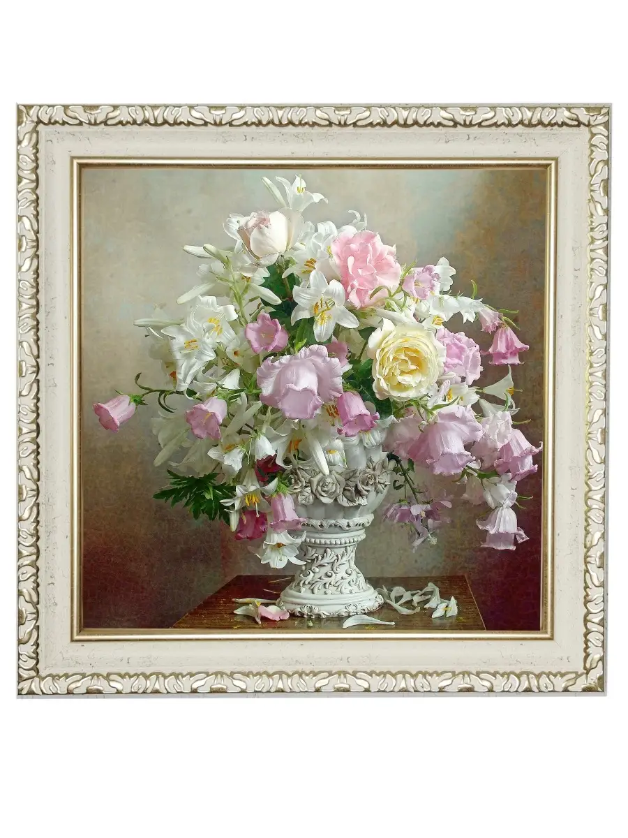 Изысканная картина с живописными цветами, репродукция выполненная в высоком разрешении на натуральном холсте. Эта утонченная работа паразит ваш взгляд своей яркостью и красотой. Полевые цветы создадут неповторимое сочетание цветов на вашей стене. Рама из полиуретана с золотистой патиной добавит шарма и уюта вашему интерьеру. Украшение для домашнего пространства, эта картина подойдет для гостиной, спальни, детской или даже кухни. Нежные букеты придадут вашему интерьеру нотку романтики и свежести. Размер картины 37*37 см (холст 30х30см) идеально подойдет для любого помещения, для создания домашней галереи. Упакована в пакет и коробку для сохранности при доставке. Подарите себе или близким этот уникальный арт-продукт, который станет ярким акцентом в вашем доме. Крепление для стены в комплекте.