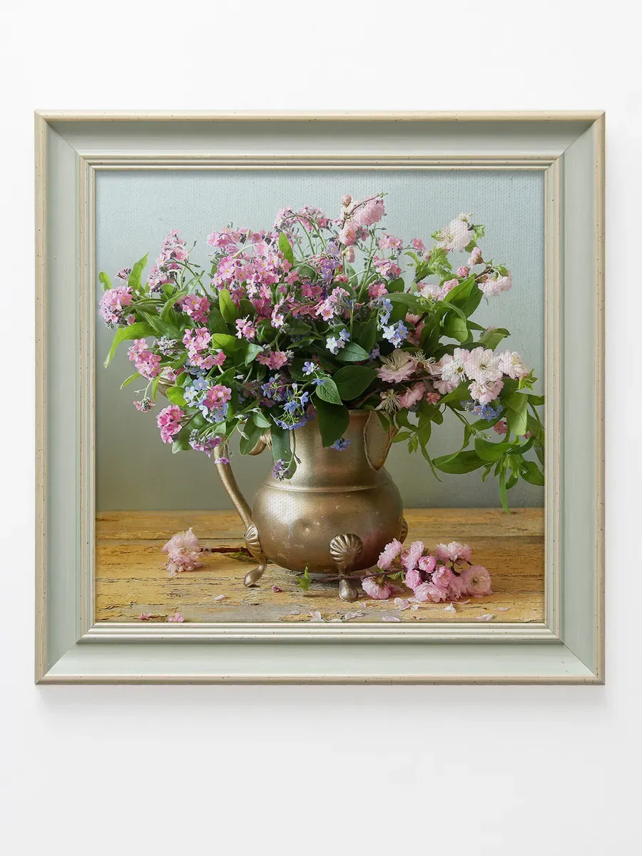 Картина на натуральном холсте "Розовый букет" от Elenadecor станет изысканным украшением любого интерьера. Эта интерьерная картина размером 37 на 37 см, выполненная на натуральном холсте, порадует вас своей красотой и качеством исполнения. Яркий и реалистичный рисунок цветов и растений, изображённых на картине, создаст в вашем доме атмосферу уюта и тепла. Картина поставляется в классической раме мятного цвета, что придает ей завершенный и элегантный вид. Благодаря удобному креплению, ее легко повесить на стену в гостиной, спальне, прихожей или в любом другом помещении. "Розовый букет" станет прекрасным дополнением к вашей коллекции картин и подарит вам эстетическое наслаждение каждый день.