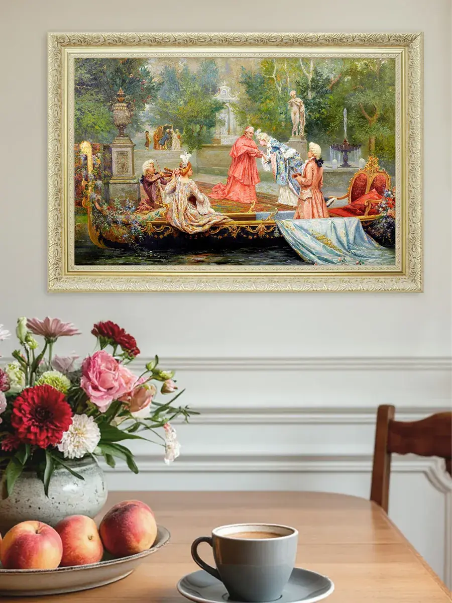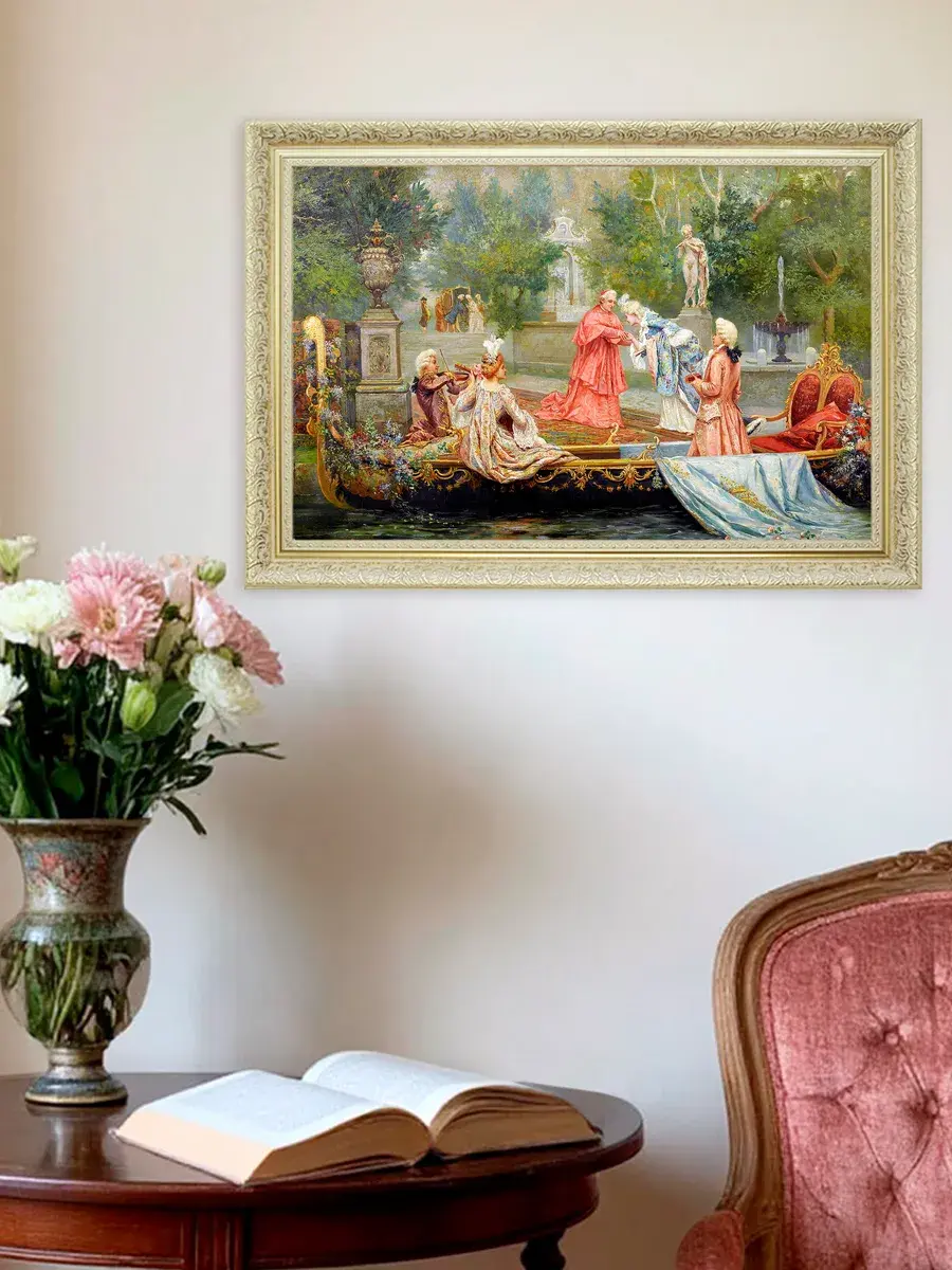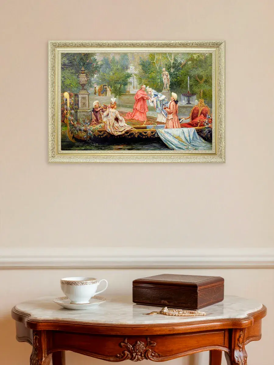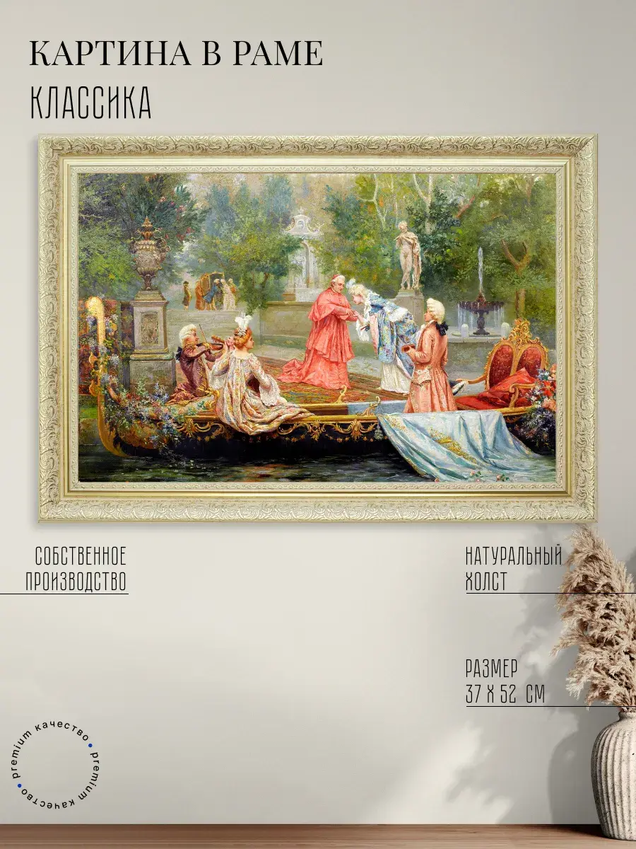 Эта интерьерная картина станет замечательным украшением для вашего дома, добавив в пространство нотки классики и элегантности. Она прекрасно подойдет для спальни, гостиной или прихожей, создавая атмосферу уюта и комфорта. Репродукция выполнена на высококачественном холсте, что позволяет передать все детали и оттенки оригинала. Размер удобен для размещения в различных помещениях, а стильная рама дополнит любой интерьер. Разместите её на стену, чтобы привнести в квартиру или дачу элементы художественного вдохновения и сделать ваше пространство более живым. Наполните дом красивыми произведениями искусства, которые будут радовать глаз и вдохновлять на творчество. Картина станет не только украшением, но и источником положительных эмоций для всей семьи.