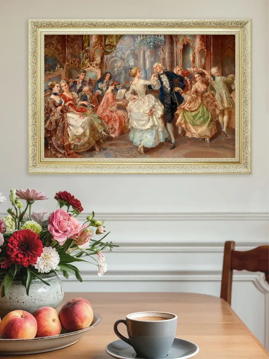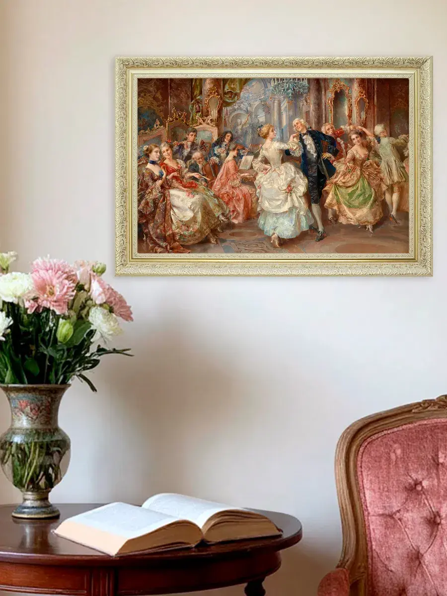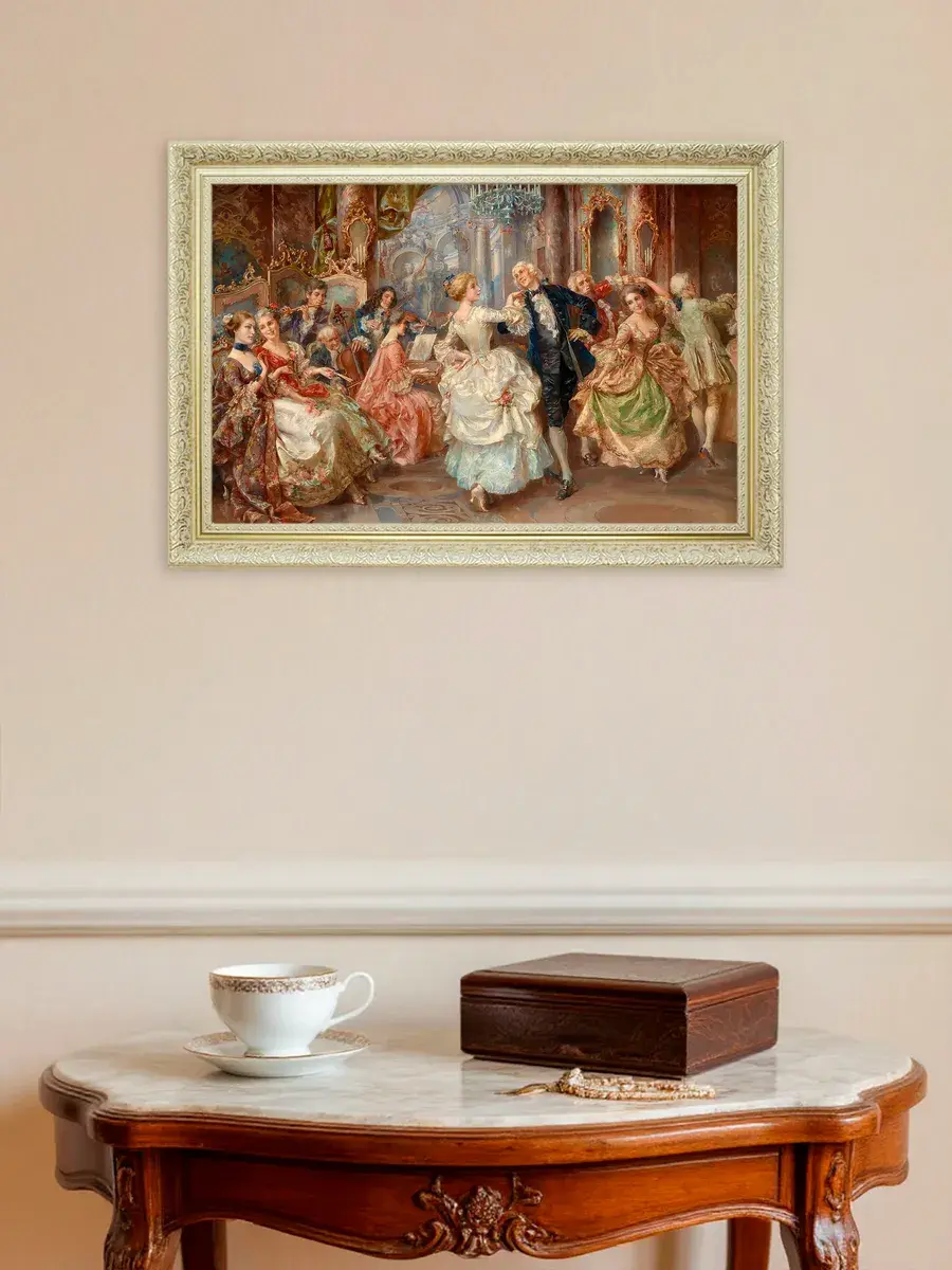 Эта интерьерная картина станет замечательным украшением для вашего дома, добавив в пространство нотки классики и элегантности. Она прекрасно подойдет для спальни, гостиной или прихожей, создавая атмосферу уюта и комфорта. Репродукция выполнена на высококачественном холсте, что позволяет передать все детали и оттенки оригинала. Размер удобен для размещения в различных помещениях, а стильная рама дополнит любой интерьер. Разместите её на стену, чтобы привнести в квартиру или дачу элементы художественного вдохновения и сделать ваше пространство более живым. Наполните дом красивыми произведениями искусства, которые будут радовать глаз и вдохновлять на творчество. Картина станет не только украшением, но и источником положительных эмоций для всей семьи.