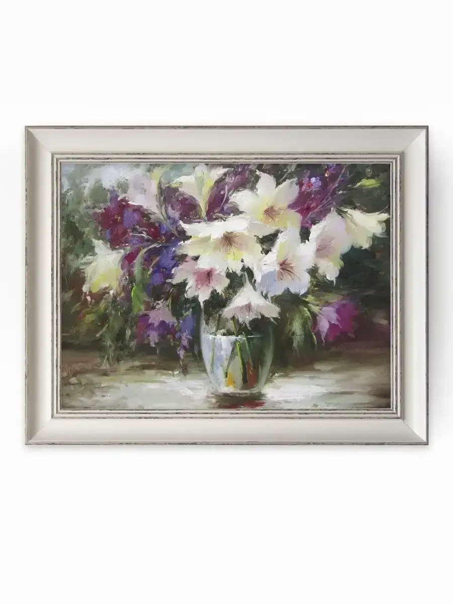Картина с цветочной композицией станет прекрасным украшением интерьера квартиры, дачи или загородного дома. Интерьерная картина имитирует масляную живопись, идеально впишется в дизайн спальни, гостиной, кухни, прихожей и других помещений. Репродукция выполнена высококачественной печатью, устойчивой к выцветанию, на натуральном холсте, покрыта лаком без запаха. Рама для картины изготовлена из полиуретана. Картина в раме - актуальный во все времена элемент декора, который придает интерьеру статусность, уют и привносит особую атмосферу в пространство. Поэтому картина, оформленная в багет - отличный подарок близкому человеку на любое событие. Размер картины по холсту 30 на 40 см, в раме 38 на 48. Для безопасной доставки мы используем защитные упаковочные материалы. Живопись идеально будет смотреться в комплекте с другими картинами коллекции.