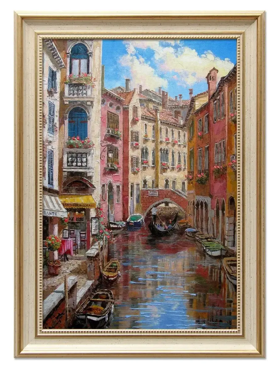 Серия пейзажей на натуральном холсте станет прекрасным украшением интерьера квартиры, дачи или загородного дома. Картины органично смотрятся сами по себе, в паре, а также в композиции всей коллекции. Интерьерная картина имитирует масляную живопись, идеально впишется в дизайн спальни, гостиной, кухни, прихожей и других помещений. Яркий пейзаж оживит пространство вашего дома и внесет романтические нотки в настроение, добавит воздуха пространству. Репродукция выполнена высококачественной печатью, устойчивой к выцветанию, на натуральном холсте, покрыта лаком без запаха. Рама для картины изготовлена из полиуретана. Размер картины по раме: 39*54 см.