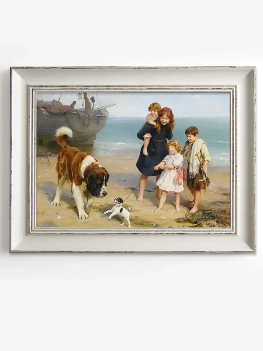 Серия сюжетных картин "Дети на море". Картина настенная для создания коллекций, напечатана на натуральном холсте, покрыта лаком. Для защиты от провисания холст наклеен на хдф. Рама белая, матовая, с не большим эффектом старения. Крепление для стены в комплекте.