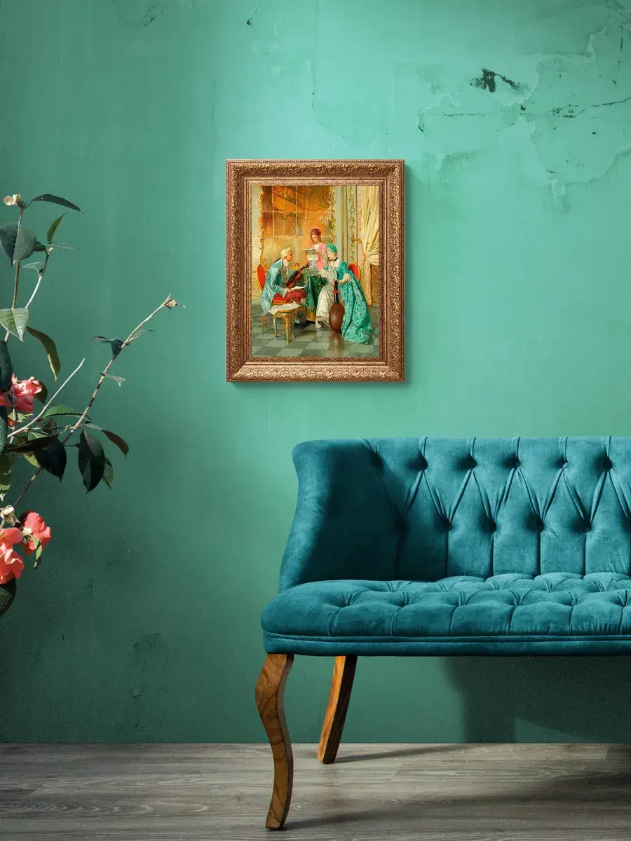 Расцвет стиля Классицизм начался в конце XVIII-начале XIX века. Он зародился во Франции сразу после Французской революции, принесшей с собой идею абсолютного господства разума над страстями, новые законы и новые идеалы. Картины напечатаны на натуральном холсте в очень высоком разрешении. Прорисовка самих героев и персонажей мастеров классицизма поражает - подчас, смотря на определённое изображение, бывает поверить трудно, что действительно, перед нами картина, а не фотография. Декор для стен в классическом интерьере. Настенный декор в раме, это современный способ украсить стены вашего дома, гостиной, прихожей и расслабить Вас после работы, атмосфера релакса, уюта и тепла. Основа из ХДФ 4мм, на него наклеен холст, что исключает провисание холста. Рама из полиуретана, размер картины с рамой 41*51 см, размер холста 30*40 см. В комплекте шуруп с дюбелем и зубчатый крепеж на раме. Картина упакована в пакет и коробку.