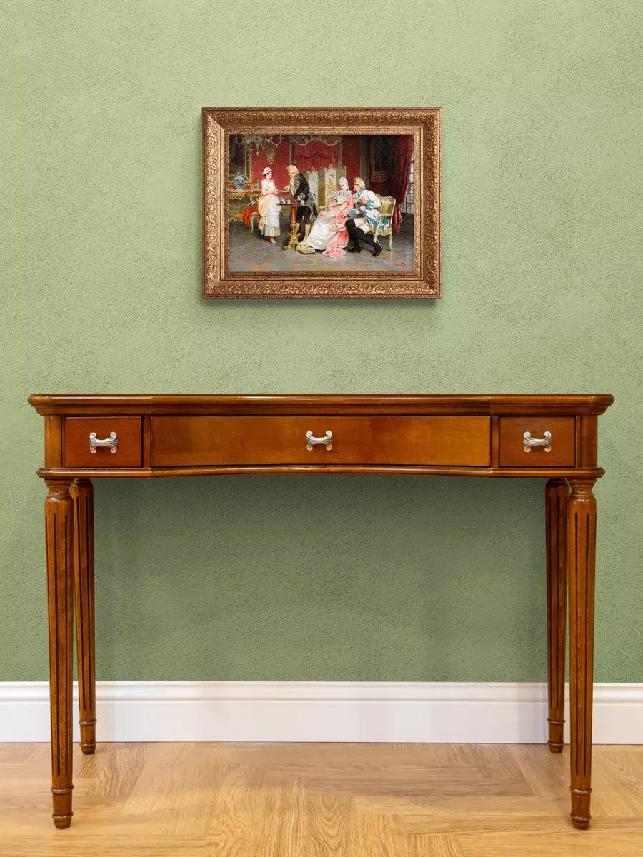 Расцвет стиля Классицизм начался в конце XVIII-начале XIX века. Он зародился во Франции сразу после Французской революции, принесшей с собой идею абсолютного господства разума над страстями, новые законы и новые идеалы. Картины напечатаны на натуральном холсте в очень высоком разрешении. Прорисовка самих героев и персонажей мастеров классицизма поражает - подчас, смотря на определённое изображение, бывает поверить трудно, что действительно, перед нами картина, а не фотография. Декор для стен в классическом интерьере. Настенный декор в раме, это современный способ украсить стены вашего дома, гостиной, прихожей и расслабить Вас после работы, атмосфера релакса, уюта и тепла. Основа из ХДФ 4мм, на него наклеен холст, что исключает провисание холста. Рама из полиуретана, размер картины с рамой 41*51 см, размер холста 30*40 см. В комплекте шуруп с дюбелем и зубчатый крепеж на раме. Картина упакована в пакет и коробку.