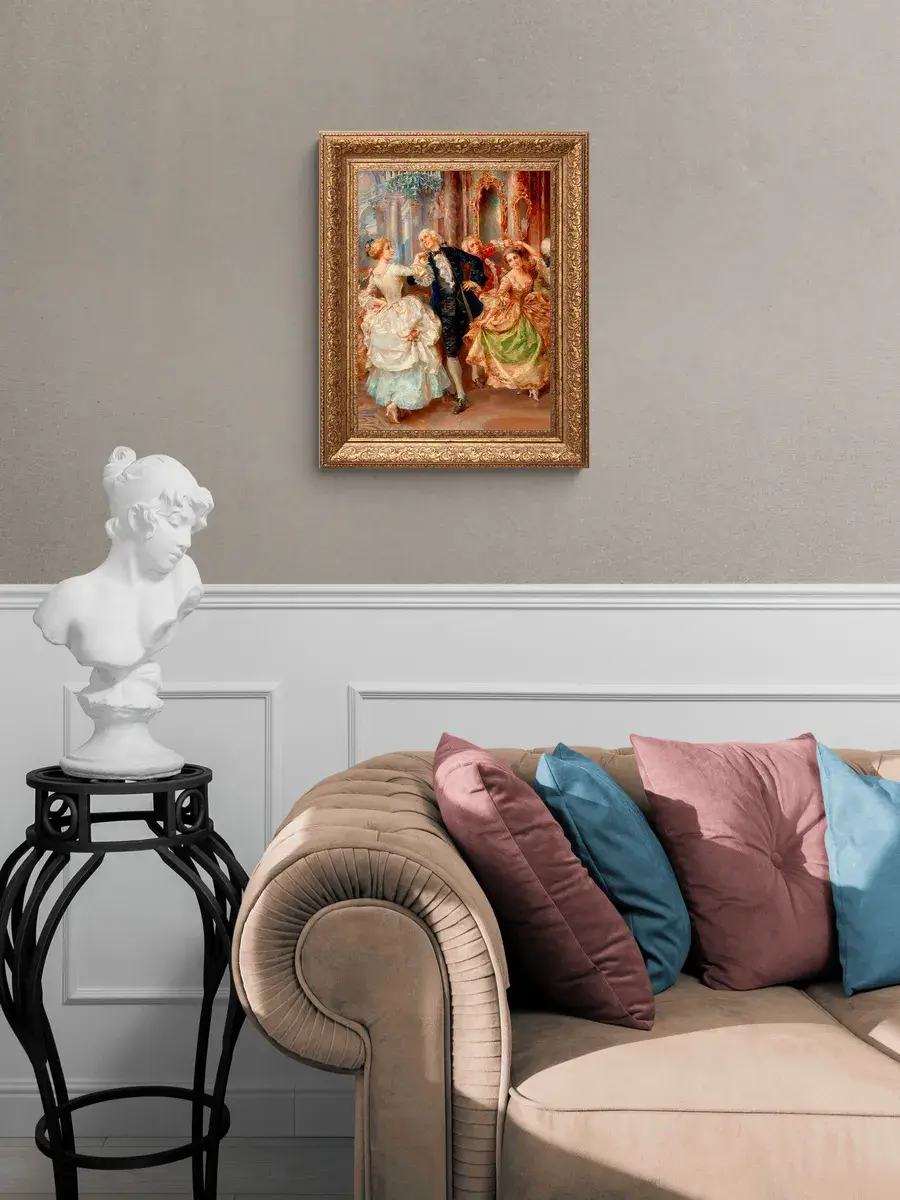 Расцвет стиля Классицизм начался в конце XVIII-начале XIX века. Он зародился во Франции сразу после Французской революции, принесшей с собой идею абсолютного господства разума над страстями, новые законы и новые идеалы. Картины напечатаны на натуральном холсте в очень высоком разрешении. Прорисовка самих героев и персонажей мастеров классицизма поражает - подчас, смотря на определённое изображение, бывает поверить трудно, что действительно, перед нами картина, а не фотография. Декор для стен в классическом интерьере. Настенный декор в раме, это современный способ украсить стены вашего дома, прихожей, гостиной и расслабить Вас после работы, атмосфера релакса, уюта и тепла. Основа из ХДФ 4мм, на него наклеен холст, что исключает провисание холста. Рама из полиуретана, размер картины с рамой 41*51 см, размер холста 30*40 см. В комплекте шуруп с дюбелем и зубчатый крепеж на раме. Картина упакована в пакет и коробку.