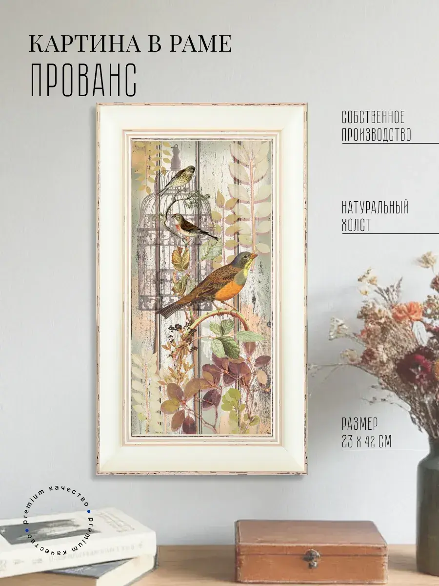 Эта настенная картина станет прекрасным украшением для вашего интерьера. Она отлично впишется в гостиную, спальню, детскую или прихожую, добавляя атмосферу уюта и тепла. Изображение птиц в стиле прованс создает ощущение свежести и спокойствия. Картина поставляется с креплением, что упрощает установку. Она станет стильным акцентом в любой кухне или даче, дополняя ваш домашний декор и радуя глаз каждый день. Коллекция включает разнообразные мотивы, чтобы удовлетворить любые предпочтения.