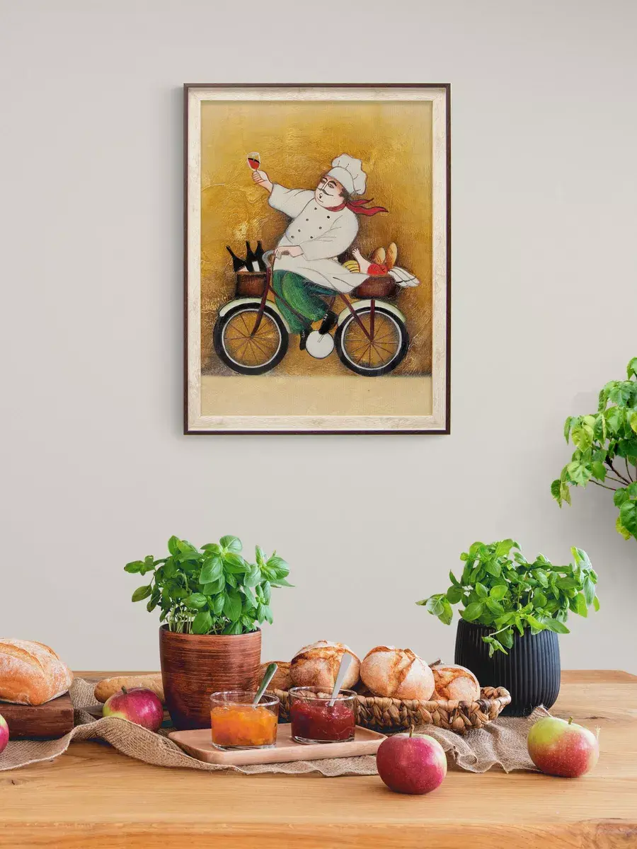 Настенный декор - картина с винтажными поварами в лаконичной бежевой раме с коричневым кантом. Картина напечатана на натуральном холсте, покрыта матовым лаком станет прекрасным дополнением и украшением интерьера. Панно на стену украсит и дополнит интерьер кухни, столовой, кафе. Милый сувенир. Рама изготовлена из полиуретана. Размер картины 33*43 см размер изображения 30*40 см. Крепление для стены в комплекте.