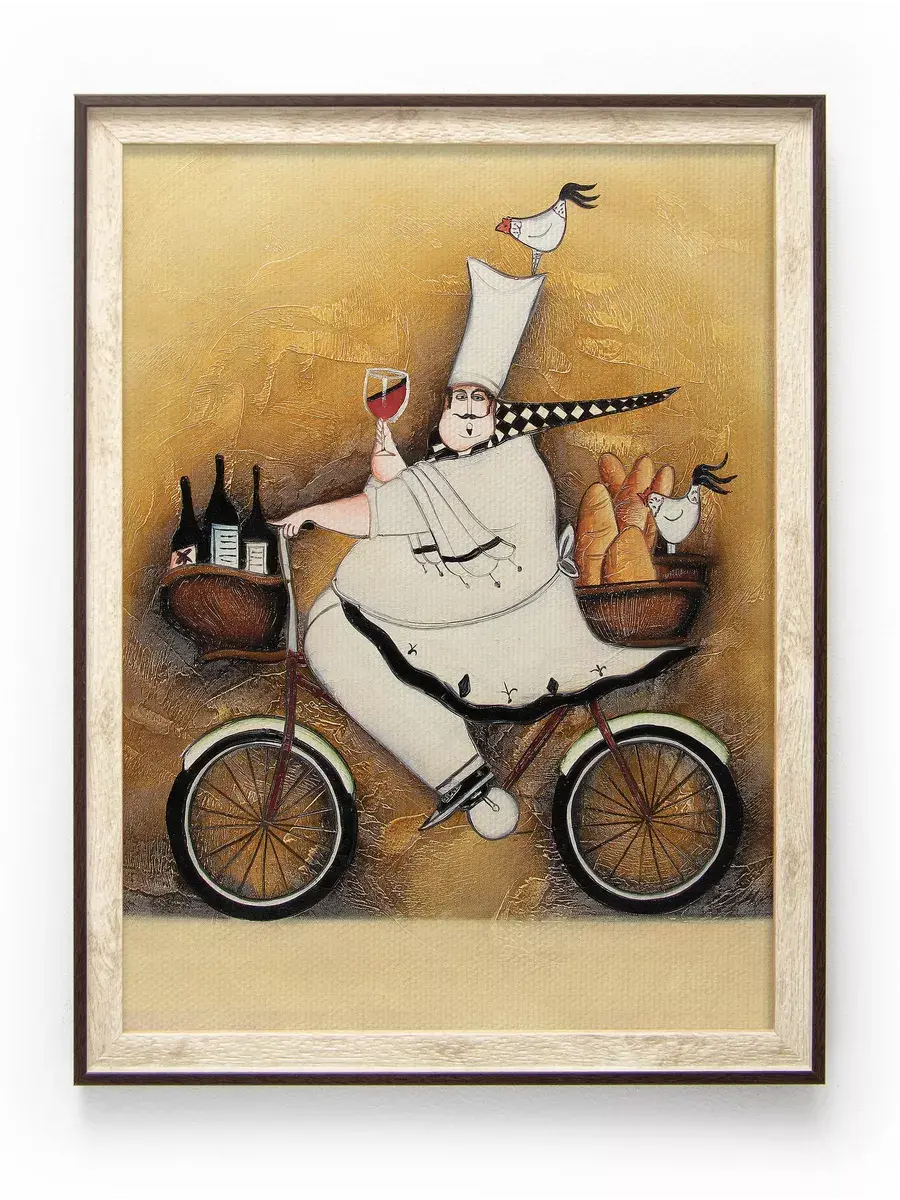 Настенный декор - картина с винтажными поварами в лаконичной бежевой раме с коричневым кантом. Картина напечатана на натуральном холсте, покрыта матовым лаком станет прекрасным дополнением и украшением интерьера. Панно на стену украсит и дополнит интерьер кухни, столовой, кафе. Милый сувенир. Рама изготовлена из полиуретана. Размер картины 33*43 см размер изображения 30*40 см. Крепление для стены в комплекте.