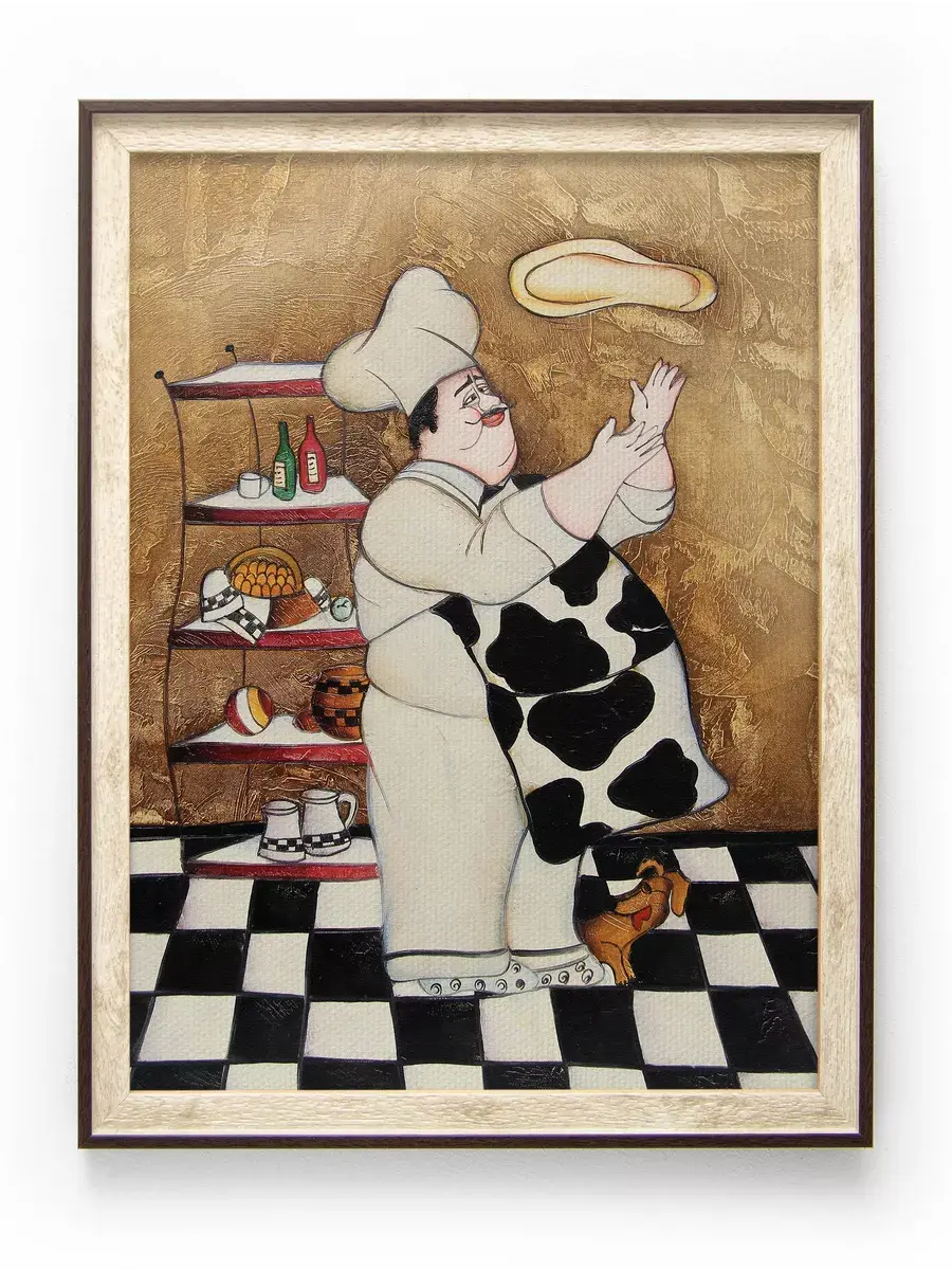 Настенный декор - картина с винтажными поварами в лаконичной бежевой раме с коричневым кантом. Картина напечатана на натуральном холсте, покрыта матовым лаком станет прекрасным дополнением и украшением интерьера. Панно на стену украсит и дополнит интерьер кухни, столовой, кафе. Милый сувенир. Рама изготовлена из полиуретана. Размер картины 33*43 см размер изображения 30*40 см. Крепление для стены в комплекте.