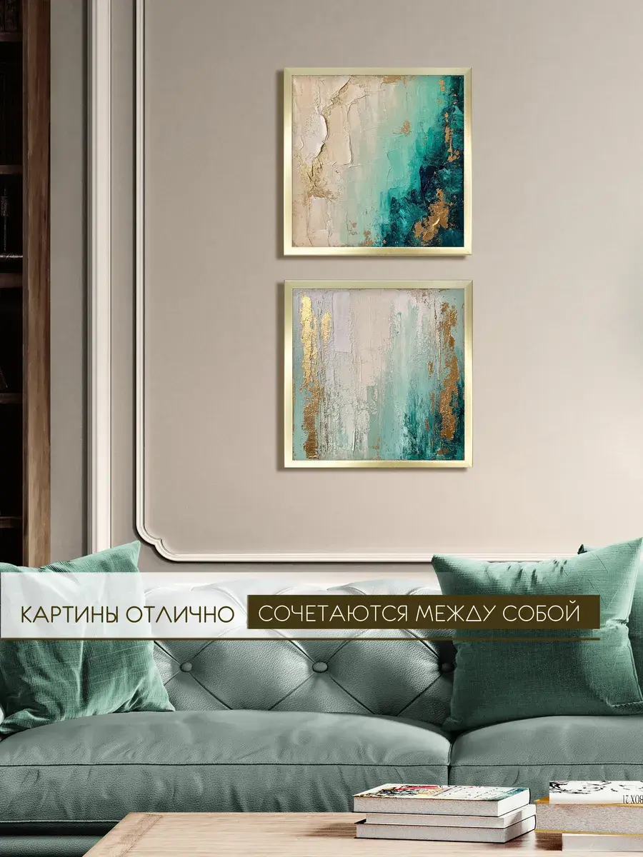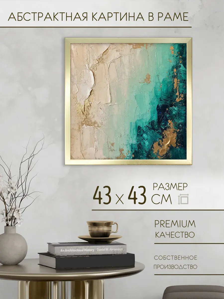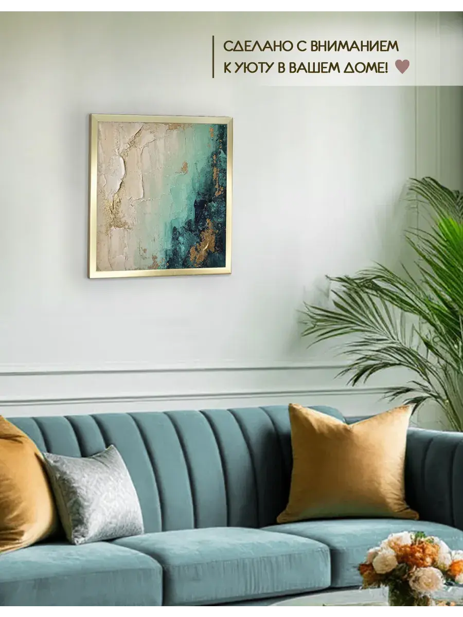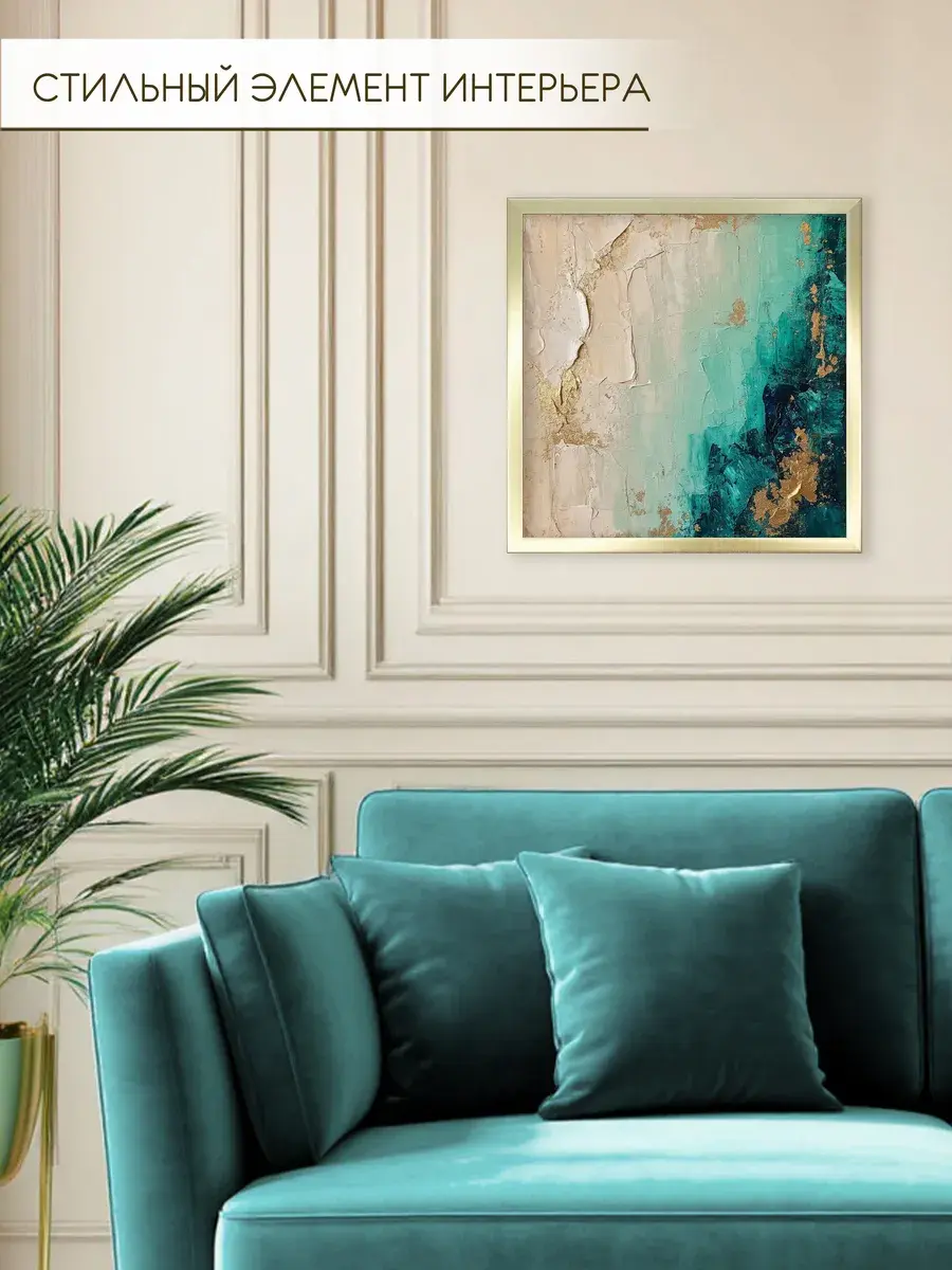 Картина напечатана на натуральном холсте, подрисовка золотой патиной, покрыта лаком. Основа для холста из ХДФ, что исключает провисание холста. Размер картины с рамой 43*43 см
