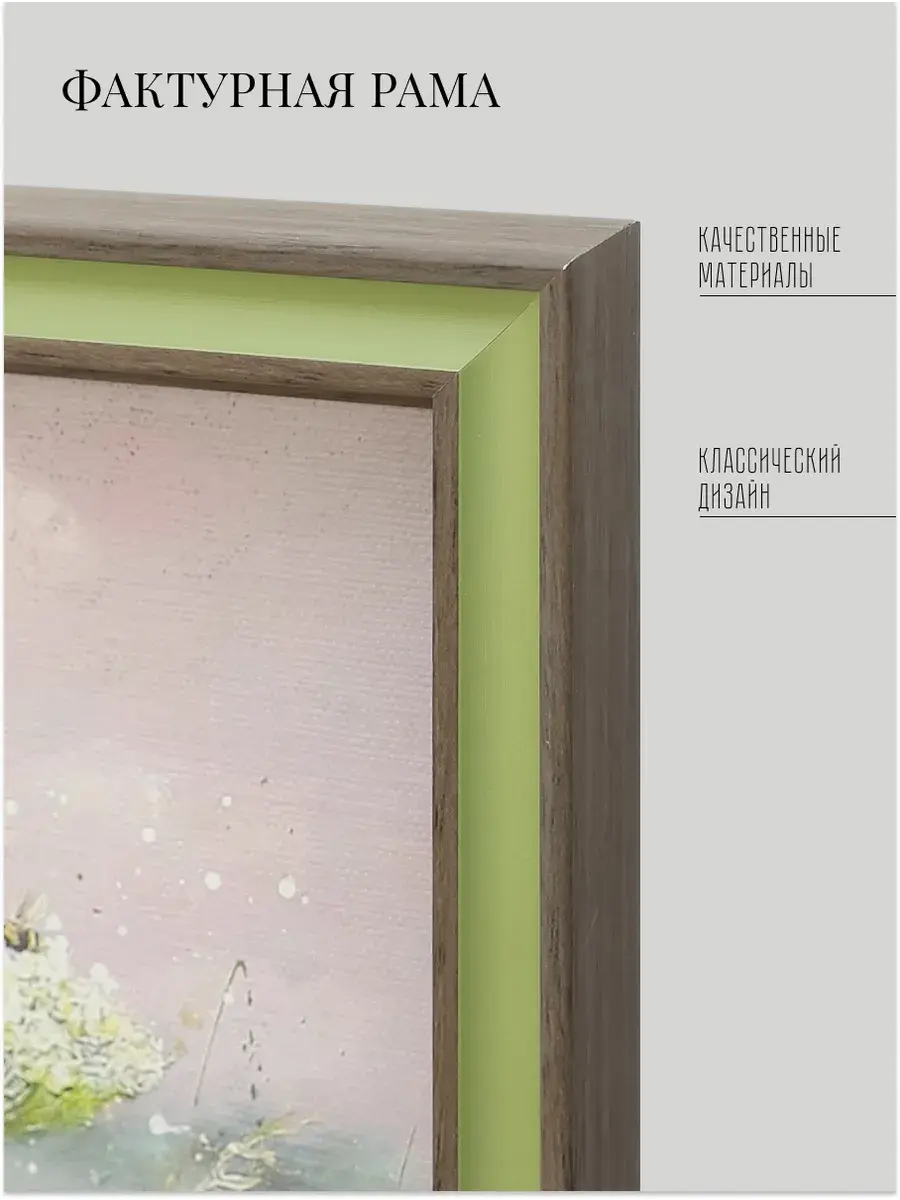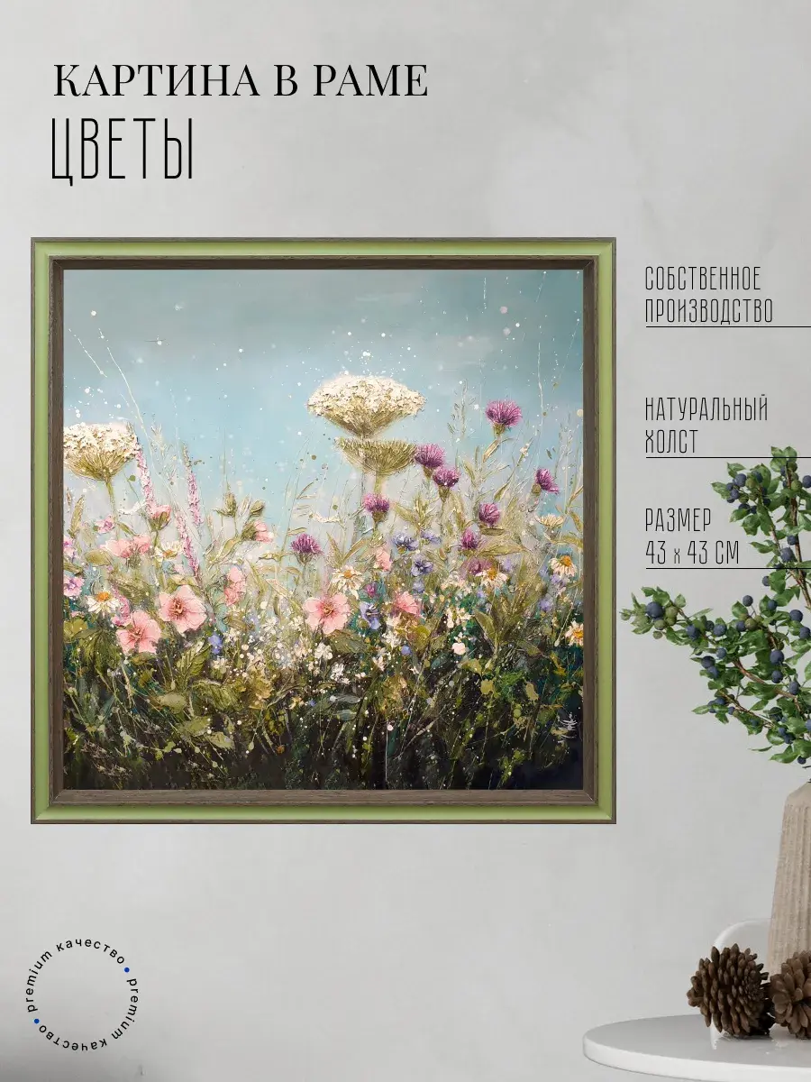 Картина на холсте от "Elenadecor" размером 43х43 см станет прекрасным дополнением к любому интерьеру, наполняя его атмосферой умиротворения и свежести. Изображение летнего луга, выполненное в нежных салатовых, оливковых и розовых тонах, словно переносит вас в солнечный день, когда легкий ветерок несет аромат полевых трав. Лаконичная рама подчеркивает красоту изображения, делая его центральным элементом декора. Эта картина на холсте станет прекрасным способом добавить в ваш дом немного природы и создать уютную атмосферу. Настенная картина на холсте станет стильным дополнением интерьера вашей кухни или спальни. Эти современные картинки привносят в атмосферу уют и гармонию, отлично сочетаясь с любым декором. Маленькая картина идеально впишется в прихожую или на стену рядом с кроватью, добавляя изюминку в обстановку. Интерьерные элементы, помогают создать завершенный и продуманный дизайн, который будет радовать глаз и поднимать настроение каждый день.