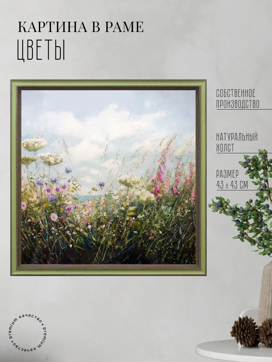 Картина на холсте от "Elenadecor" размером 43х43 см станет прекрасным дополнением к любому интерьеру, наполняя его атмосферой умиротворения и свежести. Изображение летнего луга, выполненное в нежных салатовых, оливковых и розовых тонах, словно переносит вас в солнечный день, когда легкий ветерок несет аромат полевых трав. Лаконичная рама подчеркивает красоту изображения, делая его центральным элементом декора. Эта картина на холсте станет прекрасным способом добавить в ваш дом немного природы и создать уютную атмосферу. Настенная картина на холсте станет стильным дополнением интерьера вашей кухни или спальни. Эти современные картинки привносят в атмосферу уют и гармонию, отлично сочетаясь с любым декором. Маленькая картина идеально впишется в прихожую или на стену рядом с кроватью, добавляя изюминку в обстановку. Интерьерные элементы, помогают создать завершенный и продуманный дизайн, который будет радовать глаз и поднимать настроение каждый день.