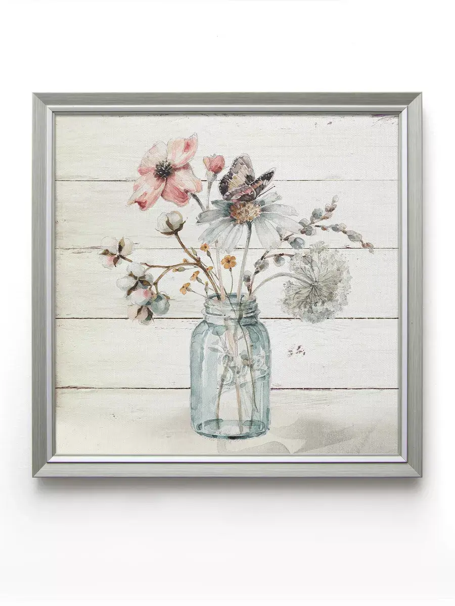 Картина напечатана на натуральном холсте, покрыта лаком. Для защиты от провисания холст наклеен на хдф. Рама из полиуретана светлая серо-голубого цвета. Картины небольшого размера 24*24, 34*34 и 44*44 см по раме, холст 20*20, 30*30 и 40*40 см соответственно, для создания коллекций. Упакованы в коробку, крепление для стены в комплекте.