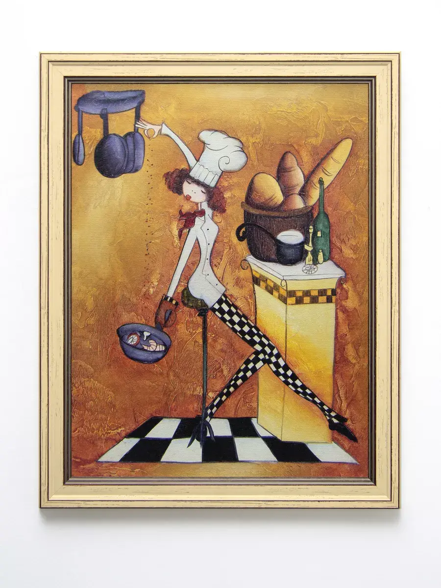 Настенный декор - картина с винтажными поварами в классической бежевой багетной раме "под дерево". Напечатана на натуральном холсте, покрыта матовым лаком станет прекрасным дополнением и украшением интерьера. Картина украсит и дополнит интерьер ресторана или кафе. Размер картины 35*45 см размер изображения 29*39 см. Крепление для стены в комплекте.
