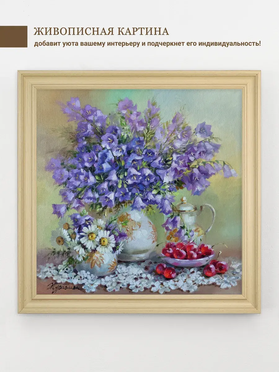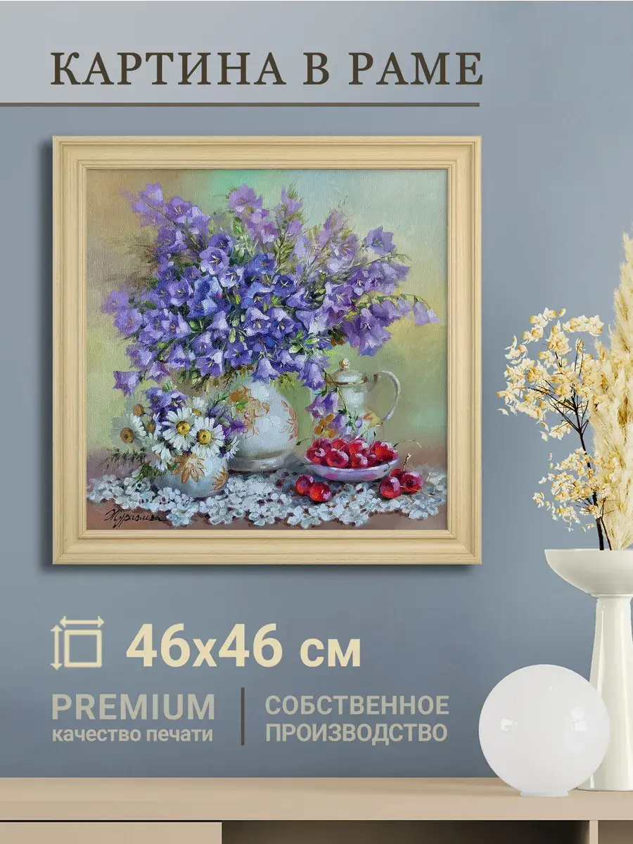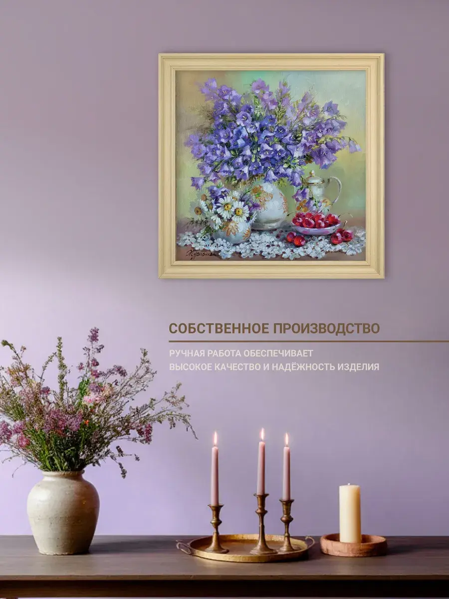 ВНИМАНИЕ! В этой серии изменился багет. Новые фото! Удивительно-красивая картина "Колокольчики" в пастельных тонах для создания коллекции в классическом стиле. Украшение для стен дома, оформления кабинета на работе, для создания уютной атмосферы на даче. Картины в светлой бежевой лаконичной раме подойдет для оформления стен в кафе и ресторане. Картина напечатана на натуральном холсте в галерейном качестве, покрыта лаком. Для защиты от провисания холст наклеен на хдф. Рама широкая из полиуретана, матовая по дерево. Размера холст 40*40 см. Ширина рамы 3,5 см. Картина - прекрасный подарок на день рождения, новоселье и просто так для себя. Картина настенная готовая в раме. Крепление для стены в комплекте.