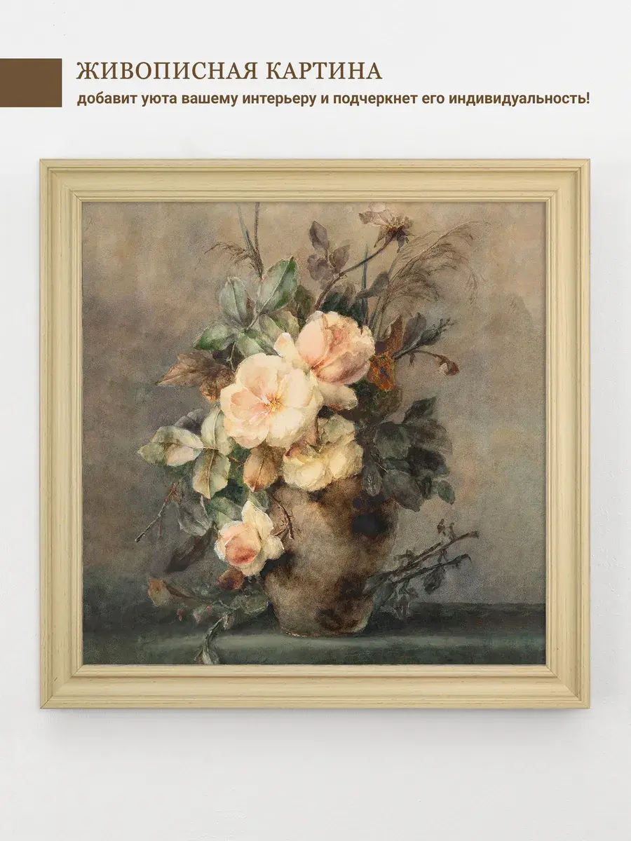 ВНИМАНИЕ! В этой серии изменился багет. Новые фото! Удивительно-красивая картина "Розы" в пастельных тонах для создания коллекции в классическом стиле. Украшение для стен дома, оформления кабинета на работе, для создания уютной атмосферы на даче. Картины в светлой бежевой лаконичной раме подойдет для оформления стен в кафе и ресторане. Картина напечатана на натуральном холсте в галерейном качестве, покрыта лаком. Для защиты от провисания холст наклеен на хдф. Рама широкая из полиуретана, матовая по дерево. Размера холст 40*40 см. Ширина рамы 3,5 см. Картина - прекрасный подарок на день рождения, новоселье и просто так для себя. Картина настенная готовая в раме. Крепление для стены в комплекте.