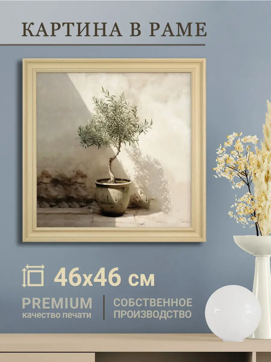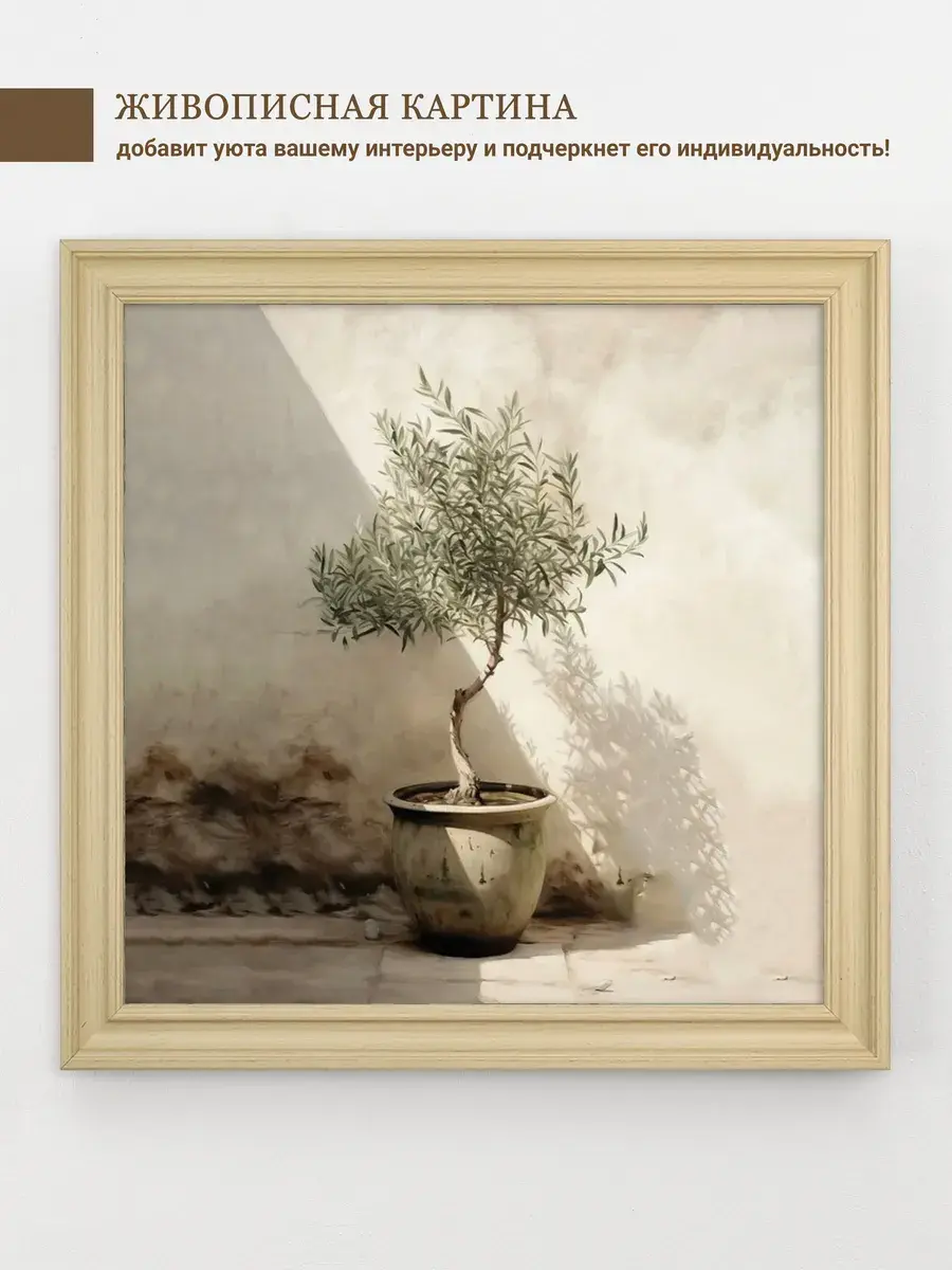 ВНИМАНИЕ! В этой серии изменился багет. Новые фото! Удивительно-красивая картина "Деревце в кадке" в пастельных тонах для создания коллекции в классическом стиле. Украшение для стен дома, оформления кабинета на работе, для создания уютной атмосферы на даче. Картины в светлой бежевой лаконичной раме подойдет для оформления стен в кафе и ресторане. Картина напечатана на натуральном холсте в галерейном качестве, покрыта лаком. Для защиты от провисания холст наклеен на хдф. Рама широкая из полиуретана, матовая по дерево. Размера холст 40*40 см. Ширина рамы 3,5 см. Картина - прекрасный подарок на день рождения, новоселье и просто так для себя. Картина настенная готовая в раме. Крепление для стены в комплекте.