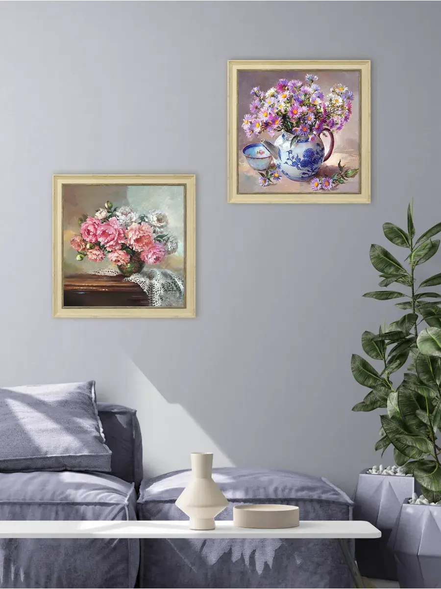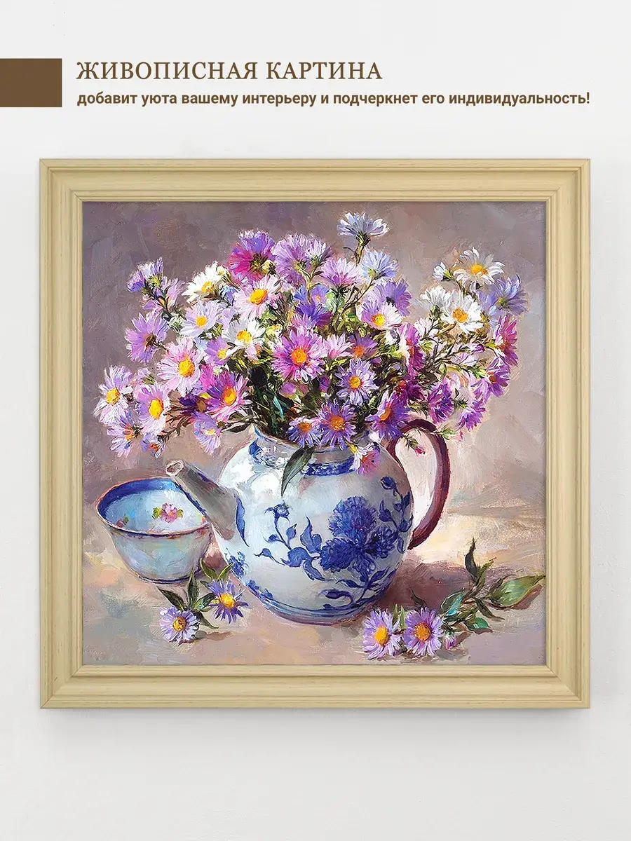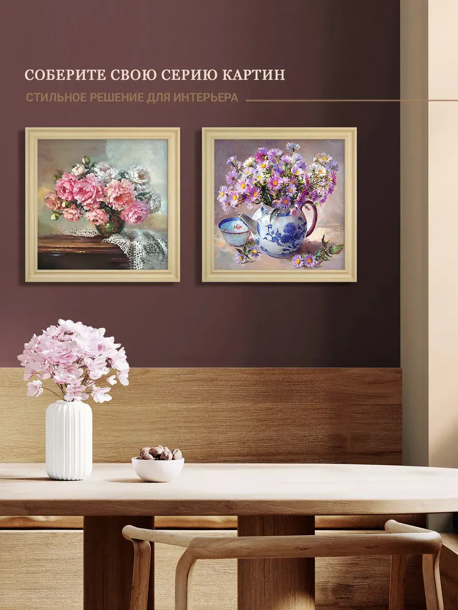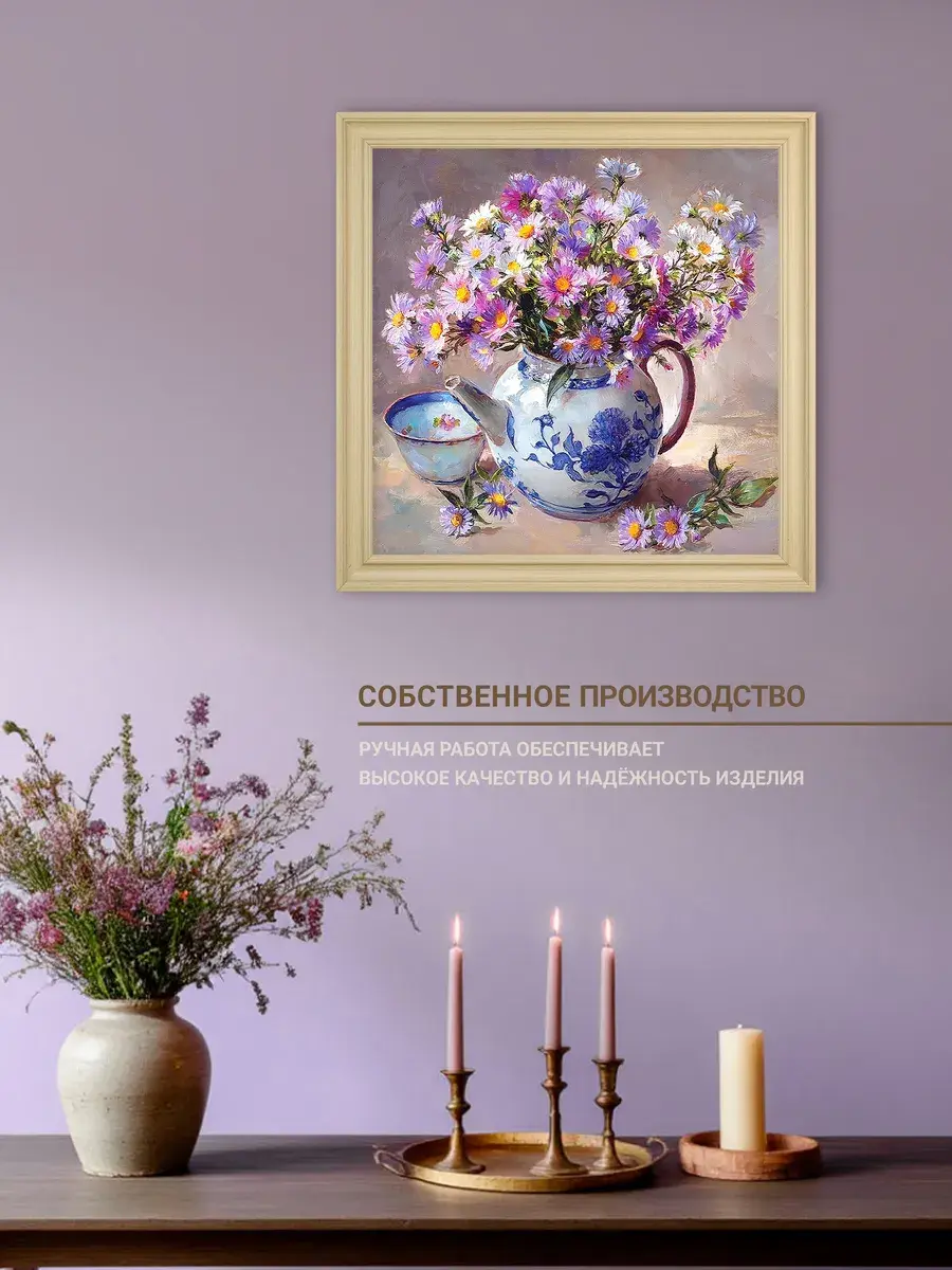 ВНИМАНИЕ! В этой серии изменился багет. Новые фото! Удивительно-красивая картина "Октябринки" в пастельных тонах для создания коллекции в классическом стиле. Украшение для стен дома, оформления кабинета на работе, для создания уютной атмосферы на даче. Картины в светлой бежевой лаконичной раме подойдет для оформления стен в кафе и ресторане. Картина напечатана на натуральном холсте в галерейном качестве, покрыта лаком. Для защиты от провисания холст наклеен на хдф. Рама широкая из полиуретана, матовая по дерево. Размера холст 40*40 см. Ширина рамы 3,5 см. Картина - прекрасный подарок на день рождения, новоселье и просто так для себя. Картина настенная готовая в раме. Крепление для стены в комплекте.