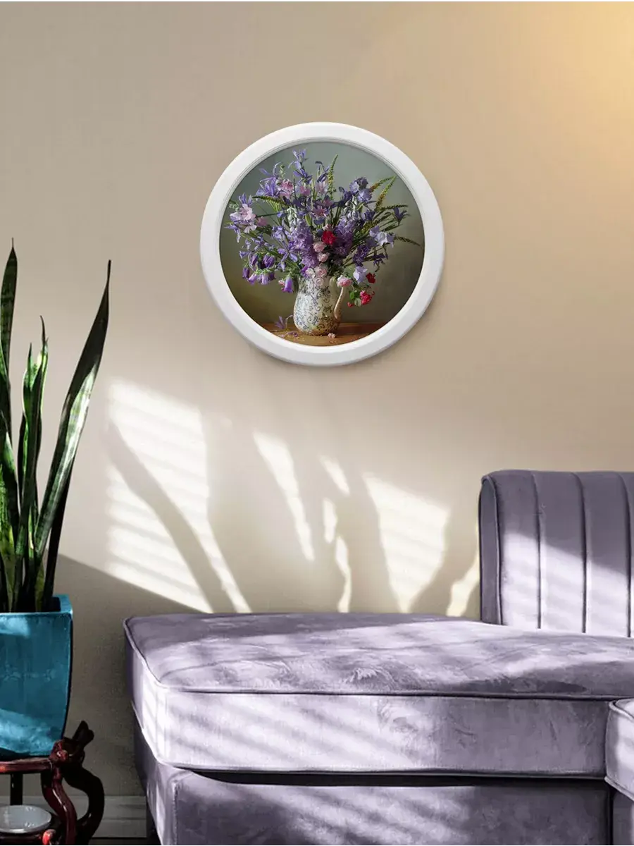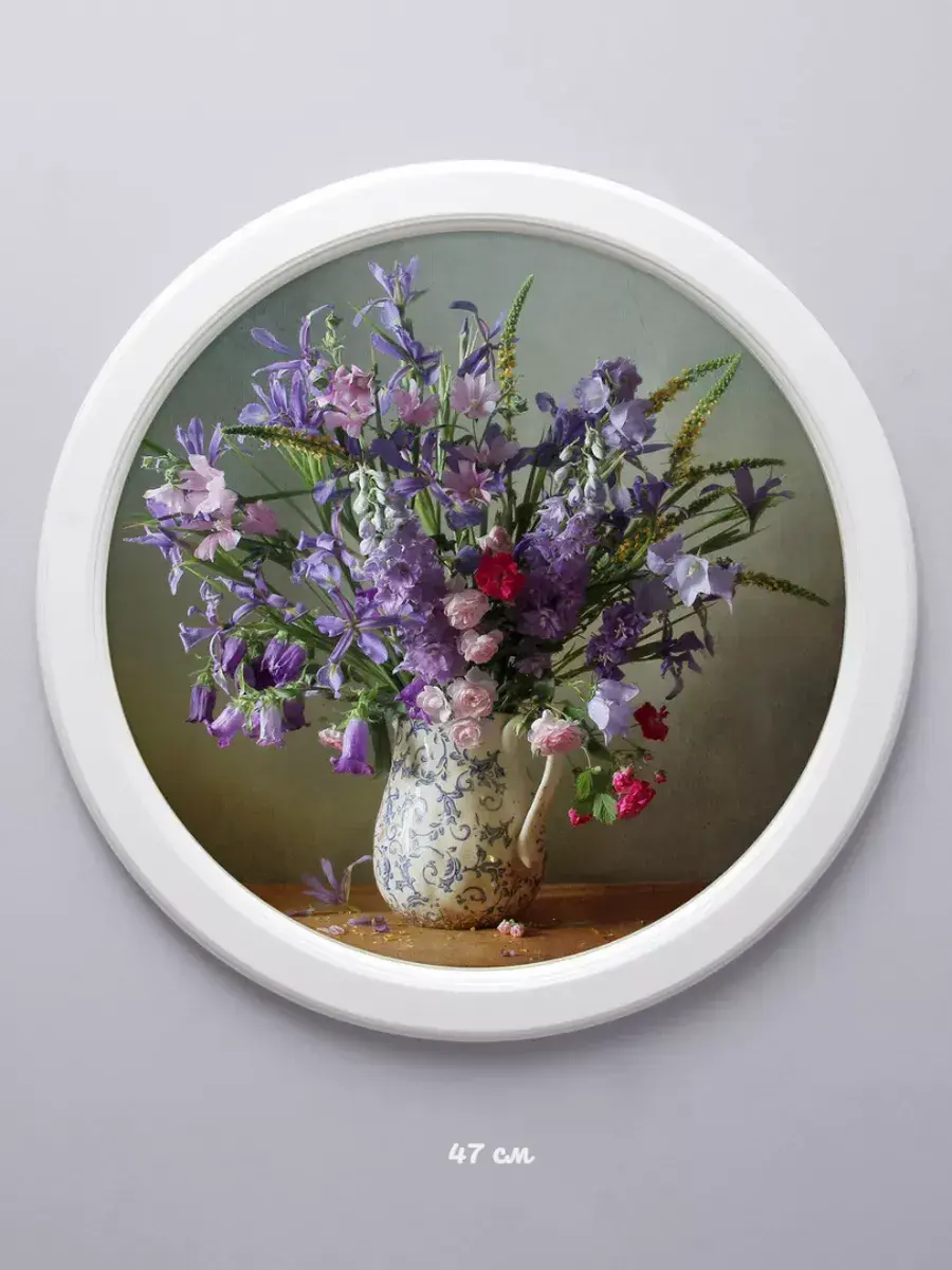 картина в круглой деревянной раме