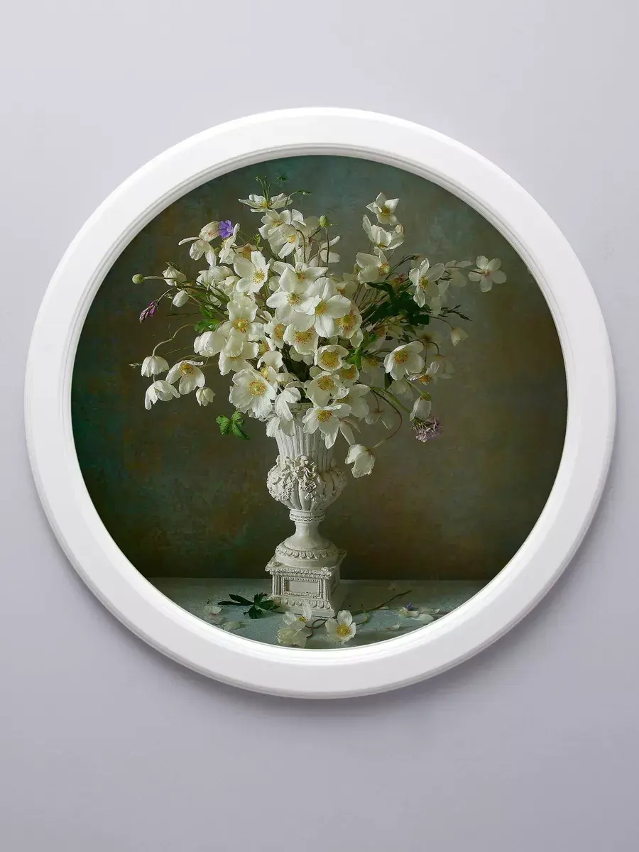 Картина напечатана на натуральном холсте, покрыта матовым лаком в круглой белой раме станет прекрасным украшением интерьера. Множество вариантов дает возможность создать собственную коллекцию. Рама изготовлена из цельного листа МДФ 16 мм, не имеет зазоров и стыков. Окрашена экологичной акриловой эмалью в белый цвет. Диаметр картины 47 см, диаметр изображения 39 см. Крепление для стены в комплекте.